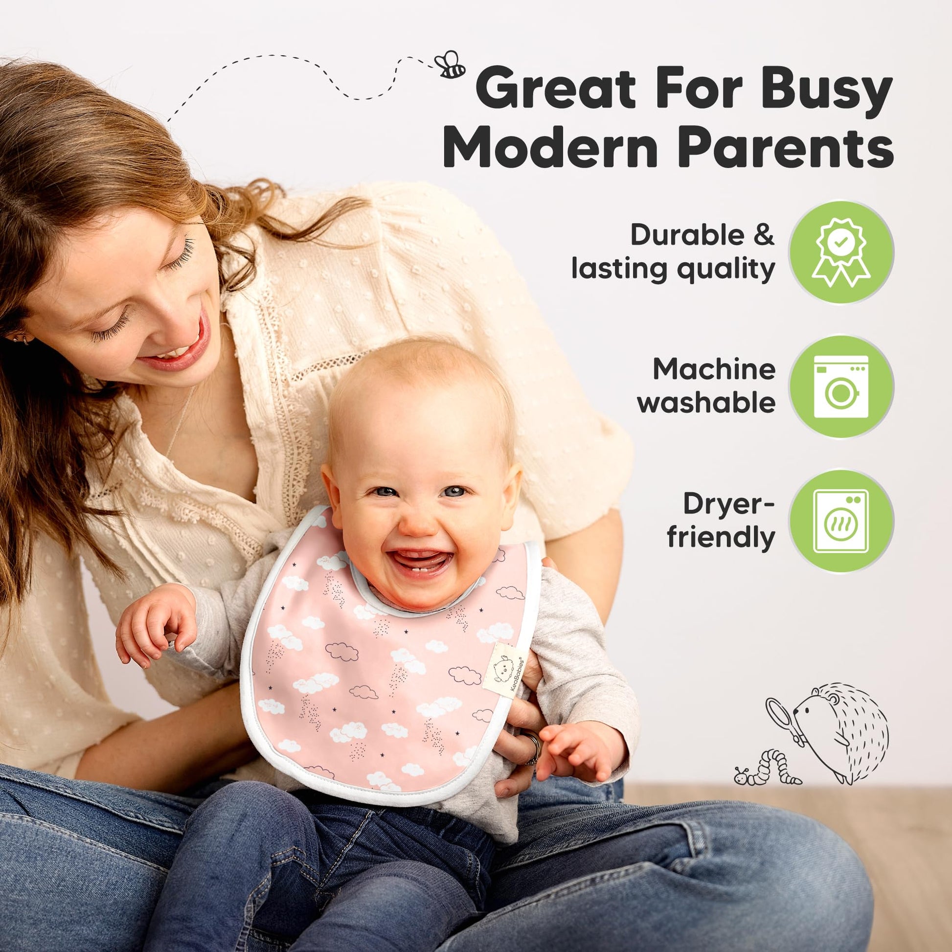 • Super Absorbent - Our organic baby boy and girl bibs are made with 100% organic cotton (GOTS-certified) and backed with water resistant fleece for added absorption. This dual layer design helps to keep your baby clean and fresh all day long. Suitable for newborns, infants, toddlers, heavy droolers and teething babies.