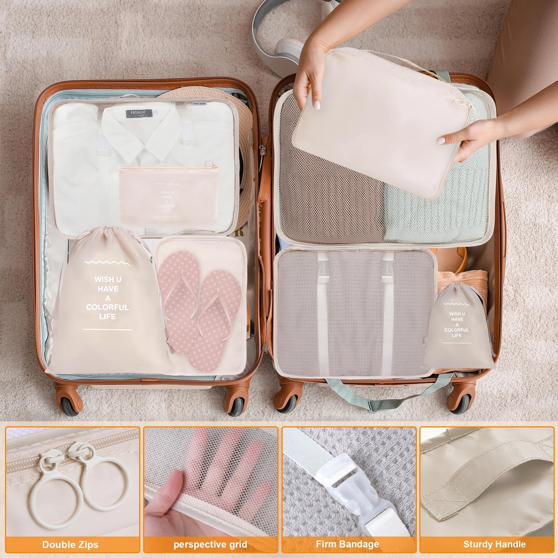 • 8PC Set Large Capacity:Different sizes of travel essential bag sets can store classified clothes, dirty clothes, bras, underwear, footwear, cosmetics, towels, toiletries and electronic accessories. It is a good travel accessories companion.
