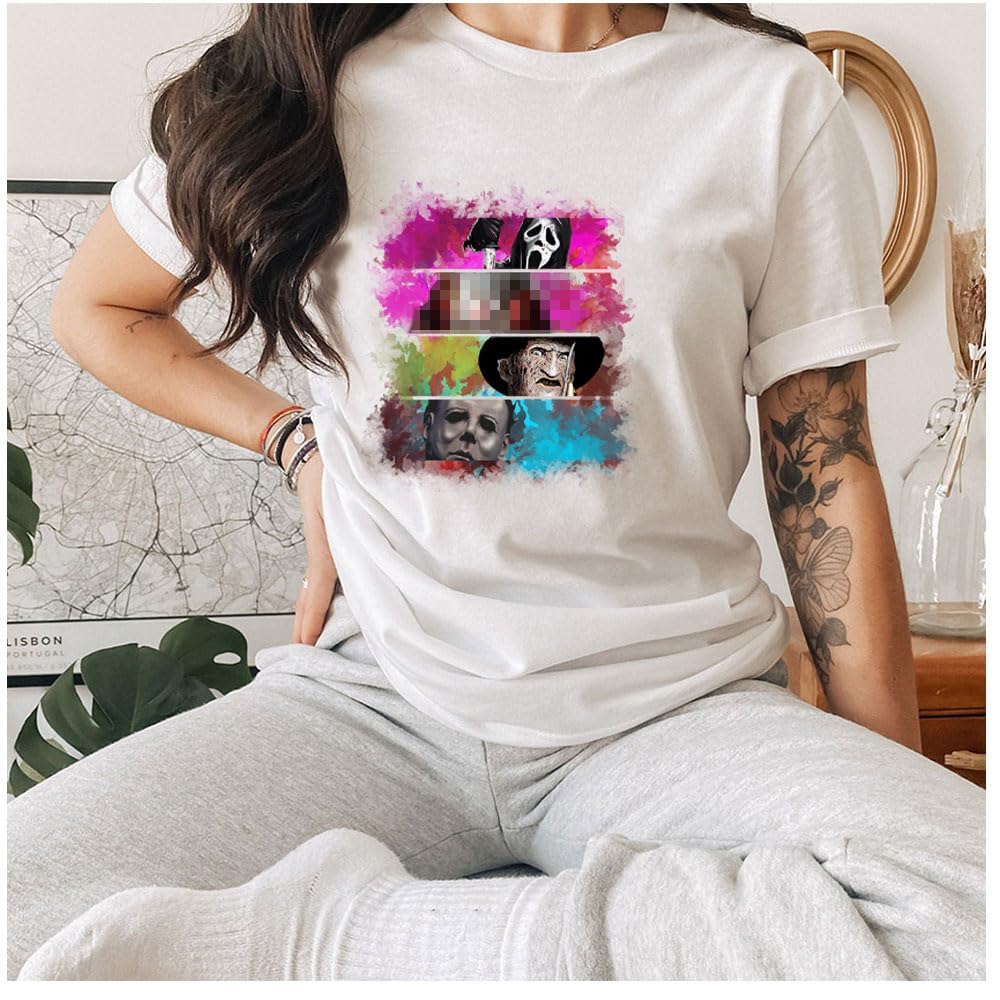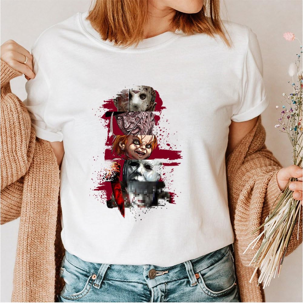 8 Sheet Halloween Iron on Patches Stickers Large Scary Movie Characters Vinyl Heat Transfer Applique Halloween Horror Clown Ghost Face Iron on Decals for T-Shirts Bags Clothing DIY Decorations