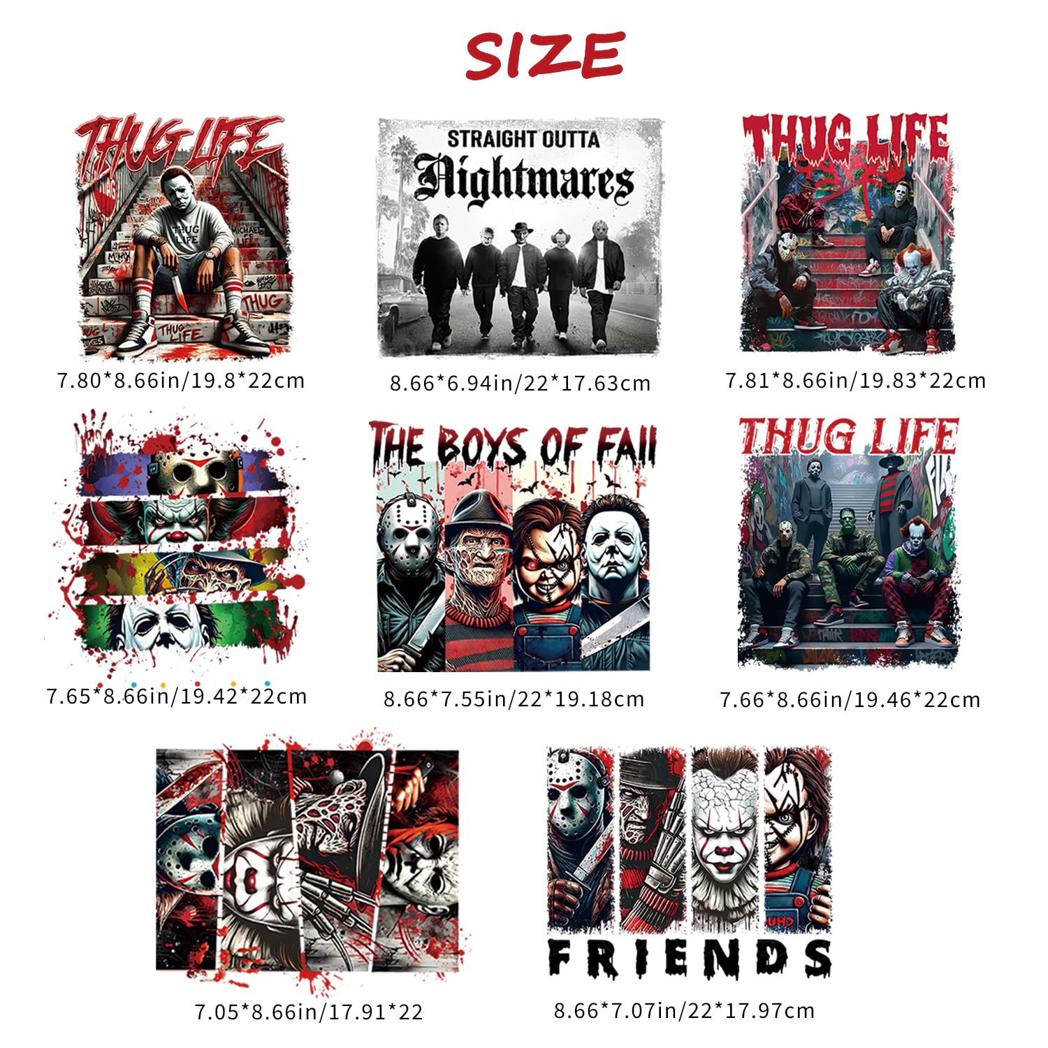 8 Sheets Halloween Iron on Transfers Patches for T-Shirt Iron on Decals Stickers Scary Movie Characters Design Heat Transfer Iron on Vinyl Appliques for Clothes Backpack DIY Craft Decor Supplies