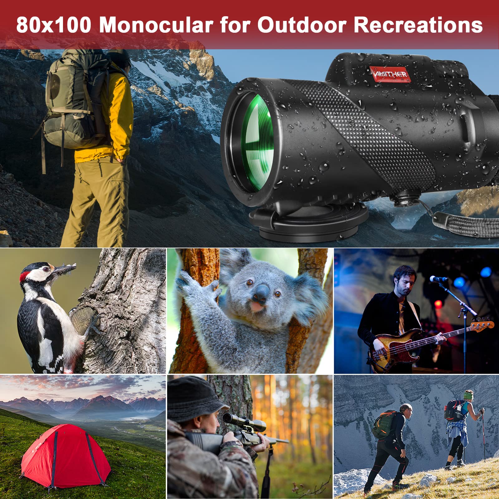 • An Outdoor Adventure Companion & Great Gift: Amither 80x100 monocular telescope for stargazing is a necessary outdoor equipment for a variety of outdoor activities including star watching, climbing, camping, backpacking, golfing, scenic viewing, concerts, sports events, traveling, astronomy, and more. It also makes an ideal gift for any outdoor fan you know