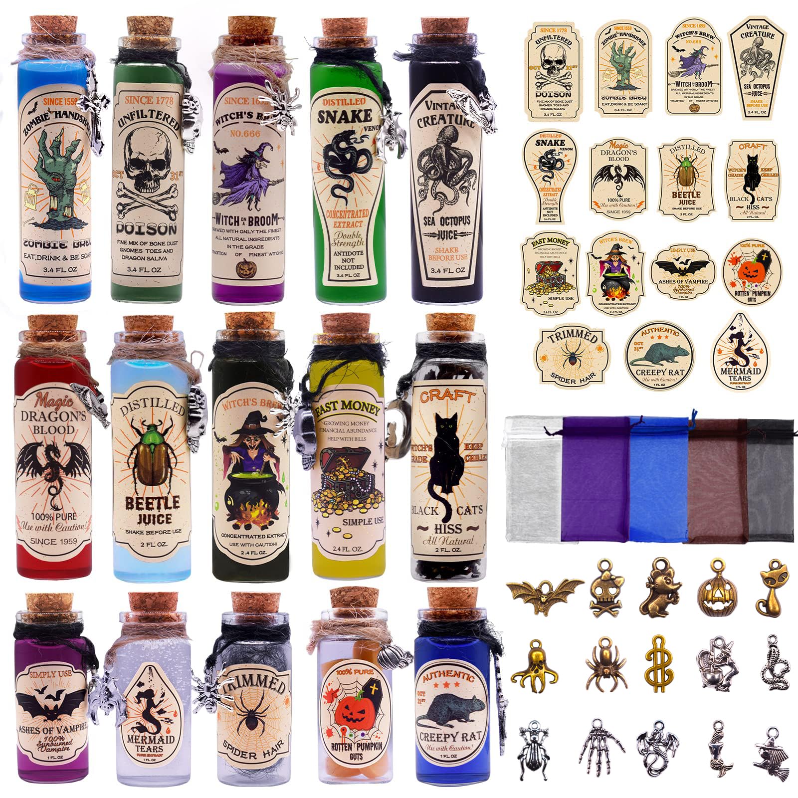 • Reliable Material:The bottle is evenly inserted into the foam to minimize damage during shipping.These Self-adhesive Halloween labels are durable,No fading,waterproof and easy to peel.Halloween metal pendants, 10 different themes, can be used to decorate halloween magic poison bottles and can also be used to make halloween bracelets.