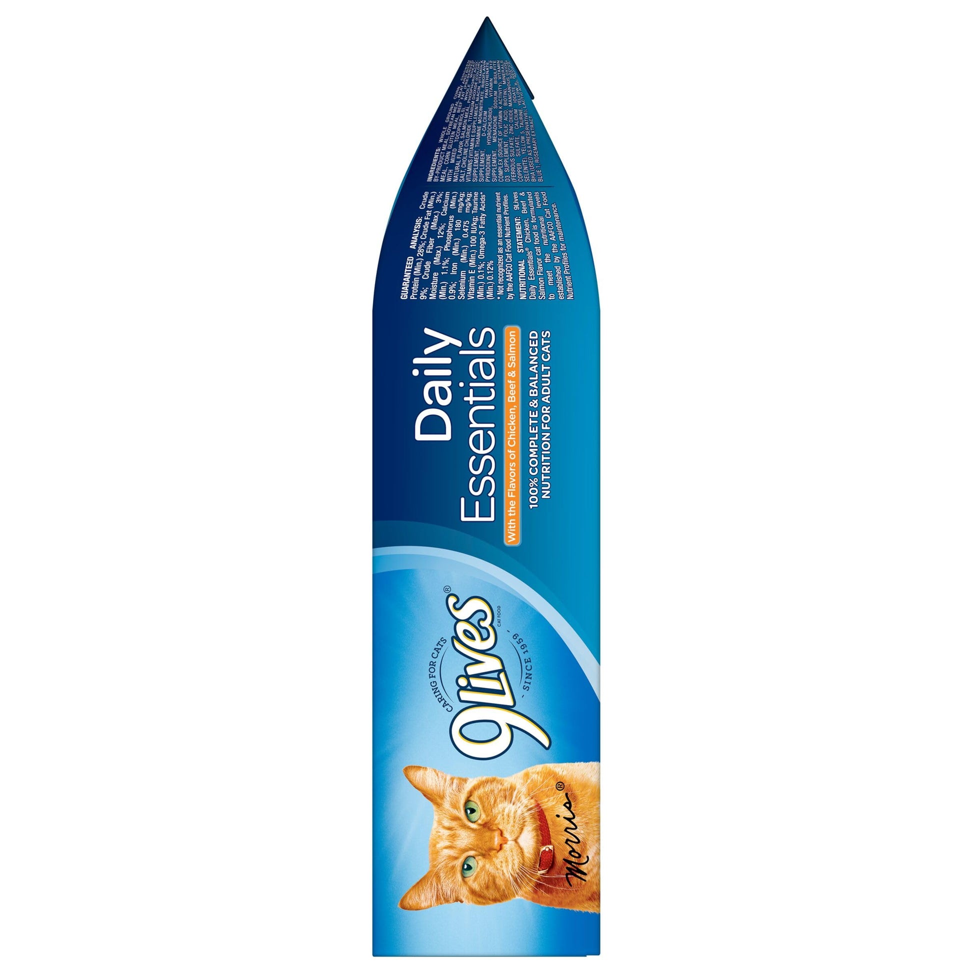 Give your adult cat the nourishment needed to help support a healthy life with 9Lives Daily Essentials cat food. This dry cat food includes ingredients like high quality protein, taurine and Omega-3 fatty acids in every tasty bite. Protein helps support strong muscles, while taurine helps maintain a healthy heart and clear vision. And Omega-3 fatty acids help keep your kitty feeling and looking great in his own skin. With the delicious flavors of chicken, beef and salmon in the mix, even the choosiest cats won’t be able to resist. Get your adult cat purring every time you fill his bowl with another tasty and balanced meal.