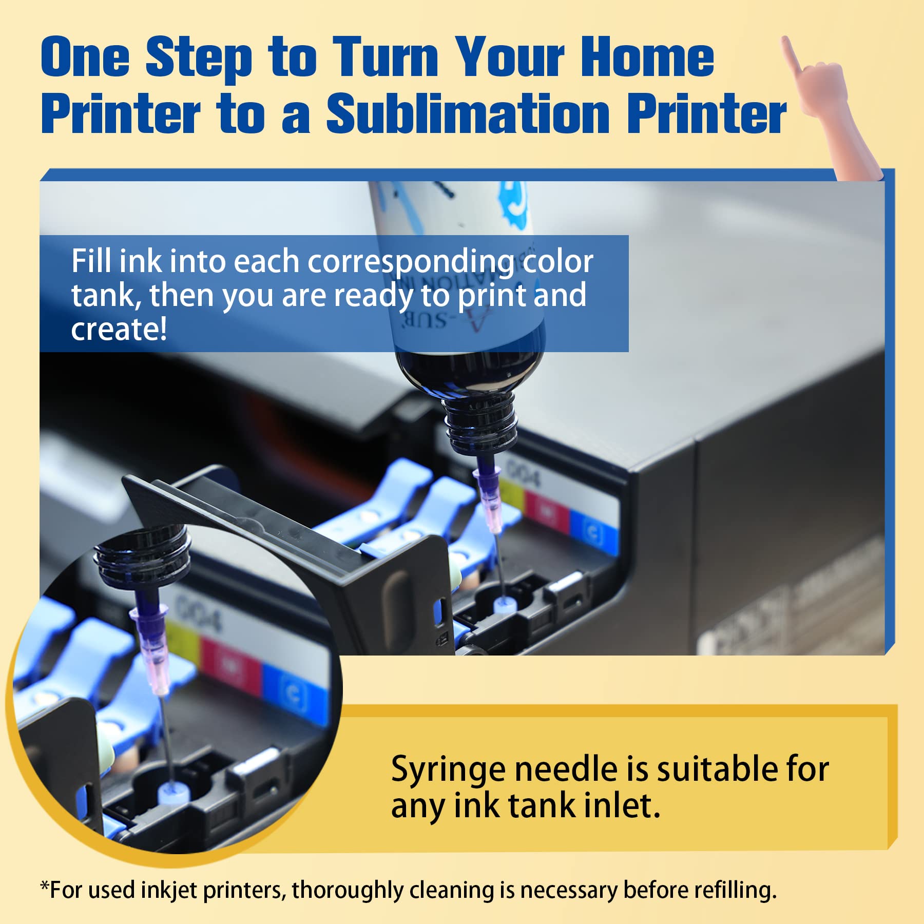 A-SUB 480ML Sublimation Ink Refill Compatible with ET-2720 ET-2760 ET-4760 ET-2800 ET-2803 ET-2850 ET-3760 WF-2830 WF-7710 Inkjet Printers for Heat Transfer Mug, Tumbler, T Shirts