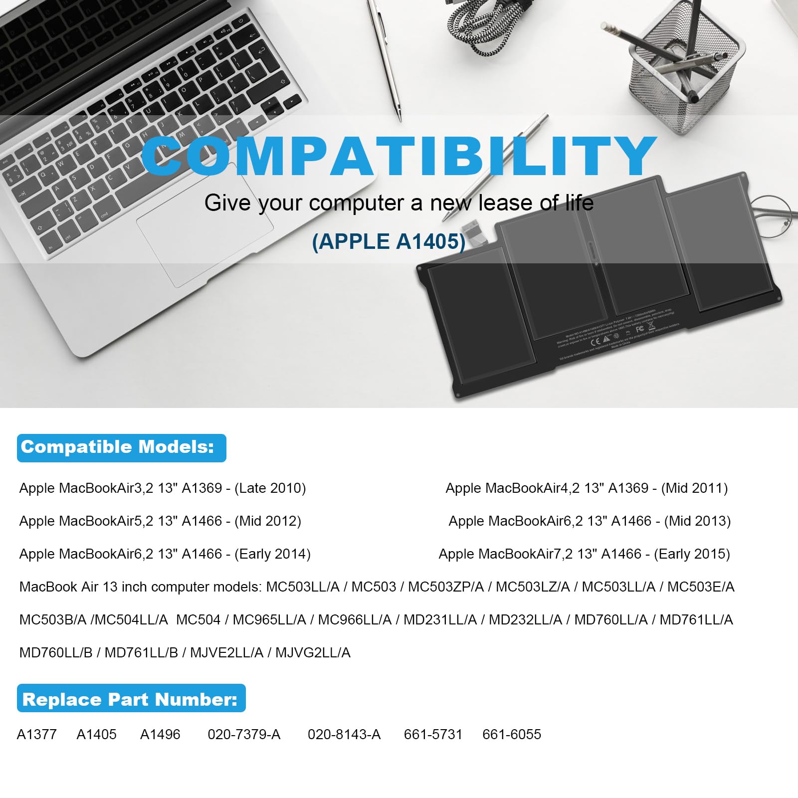 ![A1405 A1466 Laptop Battery for MacBook Air 13 inch A1466 (Mid 2012,Mid 2013,Early 2014, Early 2015,2017) A1369(Late 2010,Mid 2011 Version) fits A1496 A1377 (EMC :2925, 2469, 2559, 2392) [Upgraded 3.0]](http://ampirestore.com/cdn/shop/files/61C0kkcB5ZL.jpg?v=1761545534&width=1445)