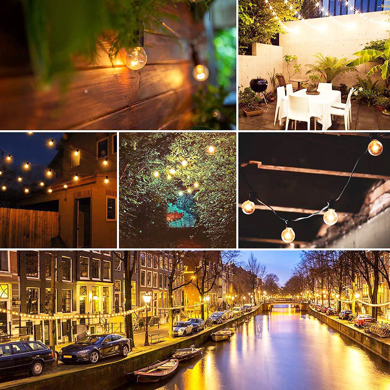 • Hook for Outdoor String Lights: Outdoor decorative light string is very easy to install, each e12 socket has a cup hook, fix it or place it anywhere as you need. The g40 Christmas light string is very flexible and practical, a light bulb that goes out does not affect other lighting bulbs. For clear replacement bulbs, please search B07DVDPYXX, search B0824RYTFP for led replacement bulbs, search B07VJMJZ9C for frosted bulbs