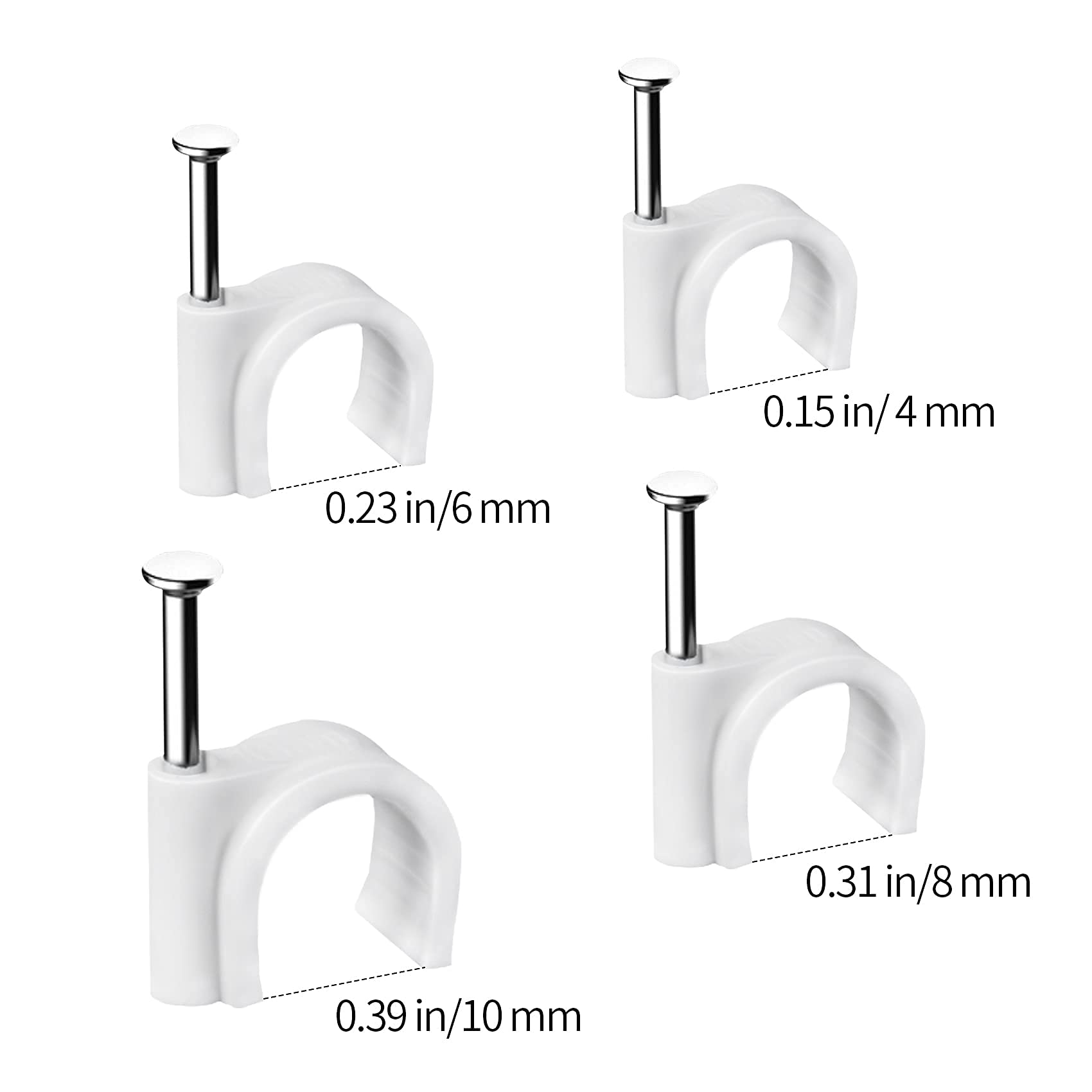 • [ Durable ] Cable clips are made of premium stabilized plastic, white style is more versatile, and integrates with the home environment to make it cleaner. Round cable clips allow you to secure runs of round cables like coax to walls and floorboards for a cleaner look and prevent tripping over loose cables