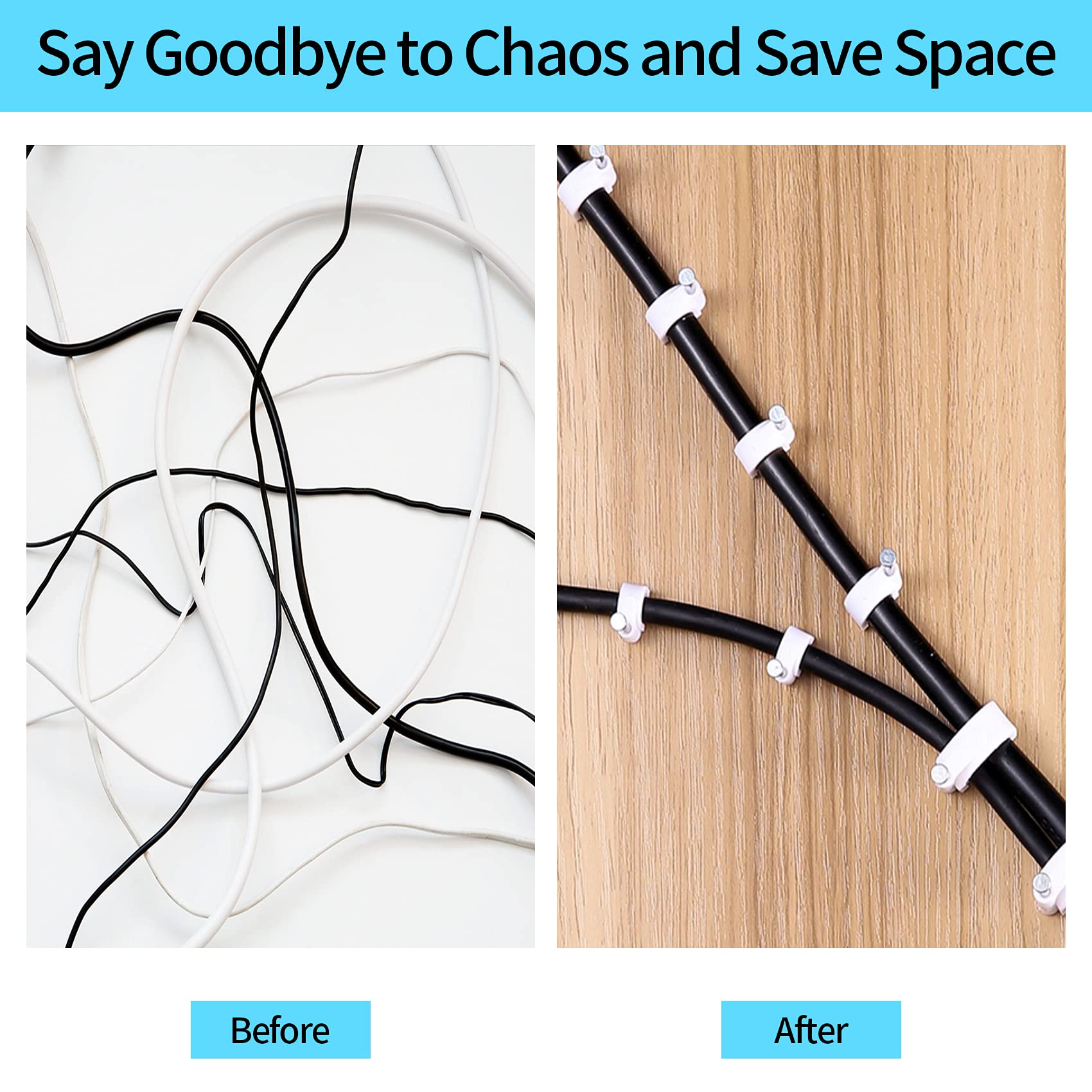 • [ Wide USE ] The cable management perfect for RG8X, RG58, RG59 or LMR 240 coax cable, RG6 digital video or audio coaxial cable, Ethernet Cat 5, Cat 6 network cable, speaker wire, phone wire, USB cable, Christmas light etc. Make your home more tidy and free up a lot of space. Cable tidy can also improve the safety of electricity use and protect the safety of family members, especially children.