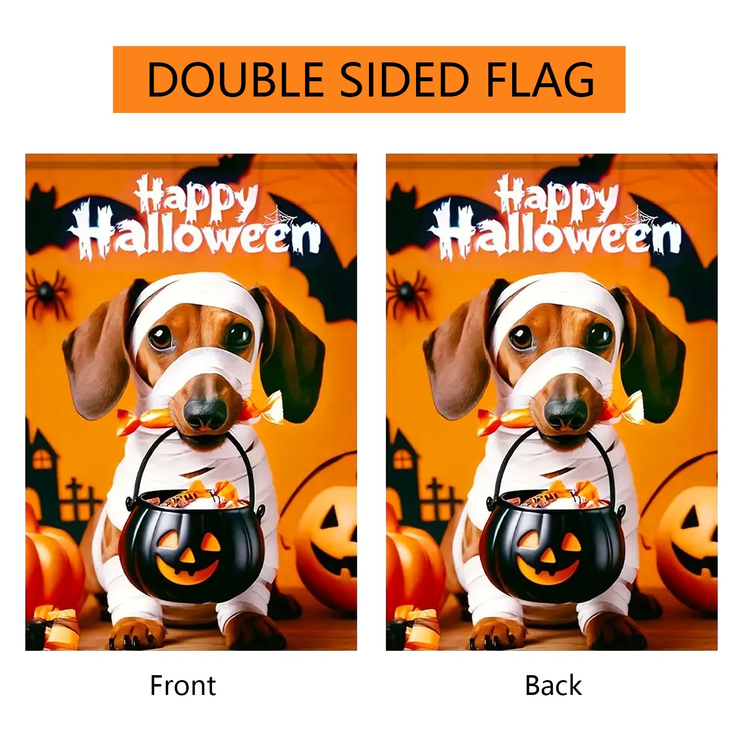 abzdfty Halloween Dog Garden Flag 12x18 Inch Double Sided Happy Halloween Pumpkin Garden Flags Yard Flag for Outside, Patio, Porch and Lawn