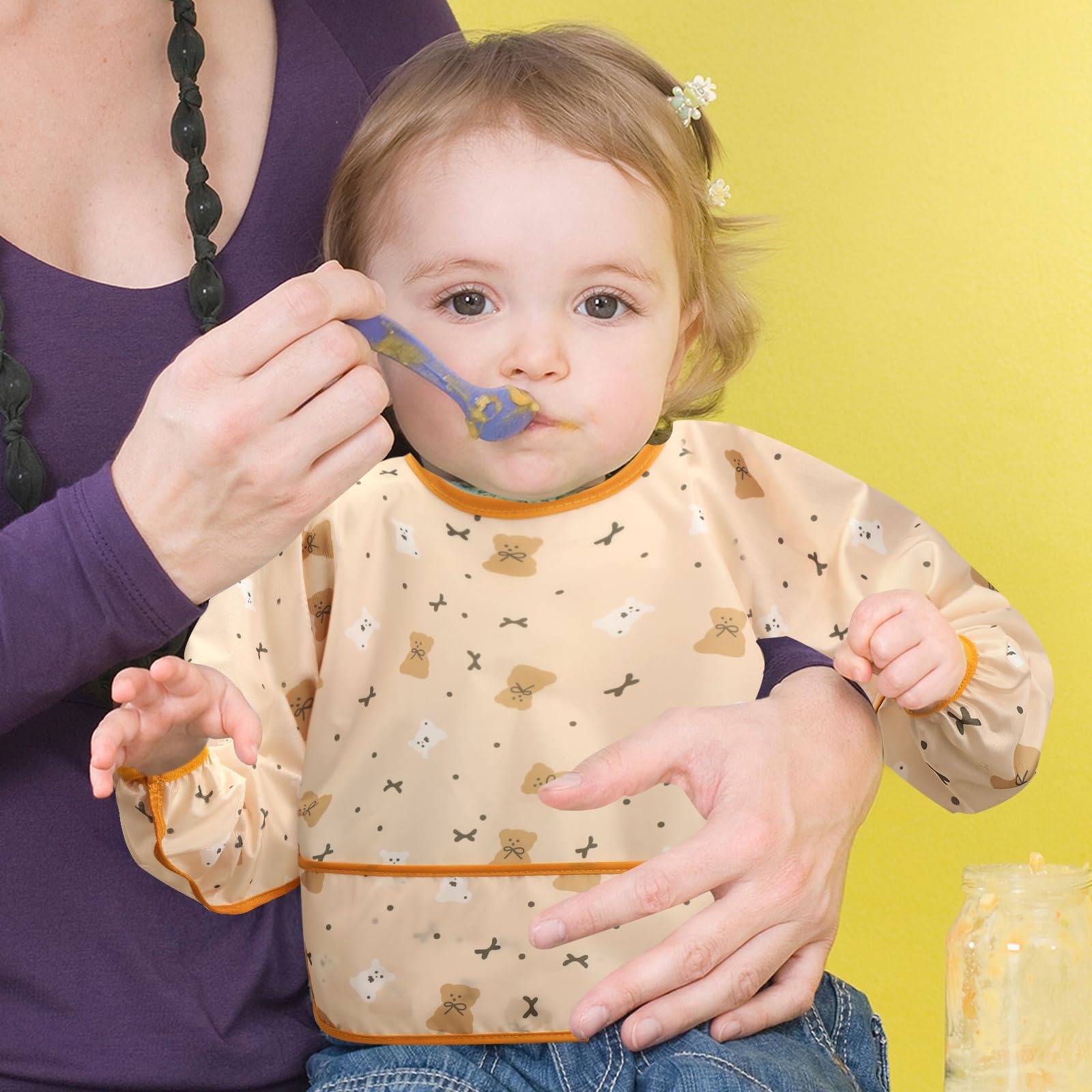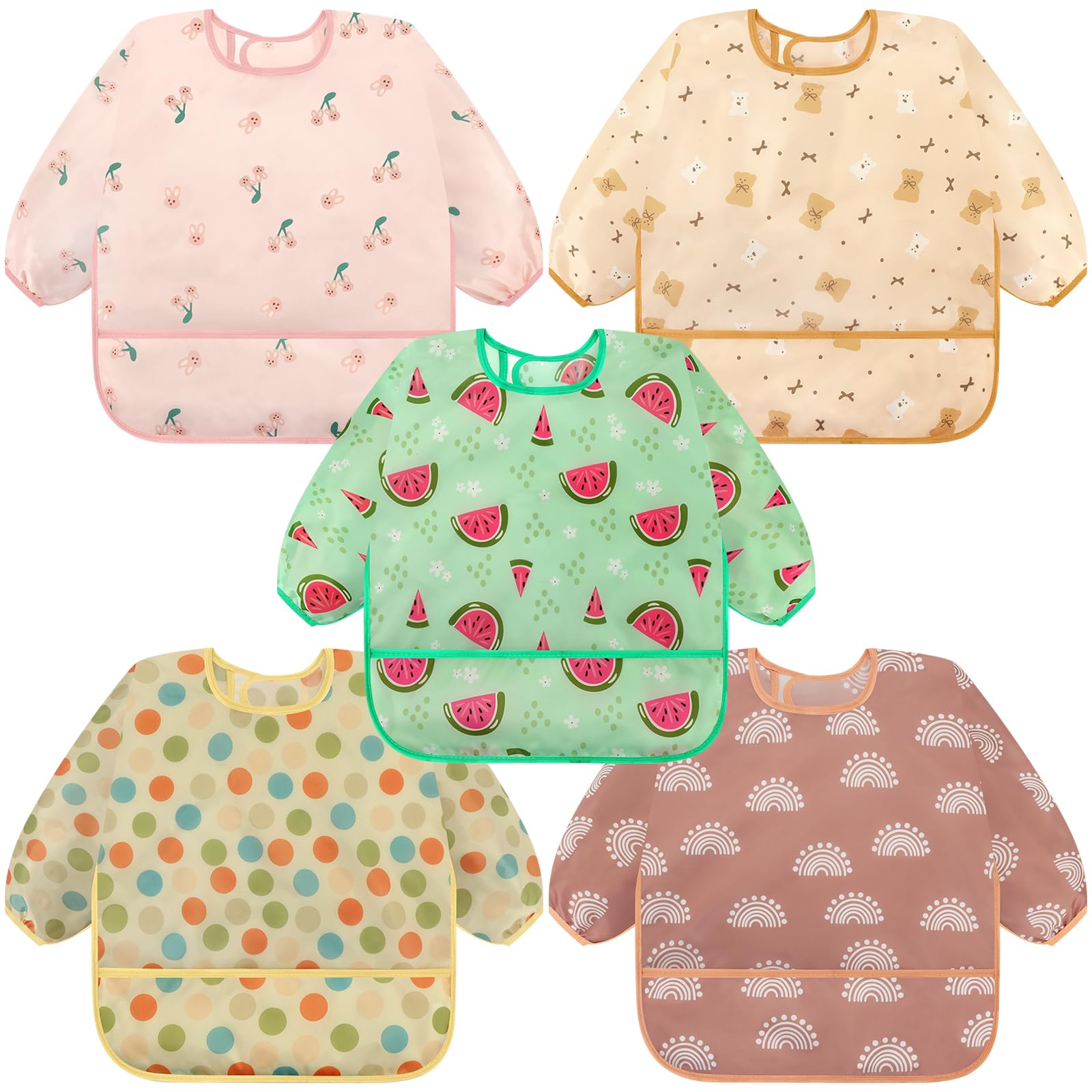 Accmor 5 Pack Long Sleeve Bibs, Baby Smock Waterproof Sleeved Bib Smock for Baby Toddler 6-24 Months