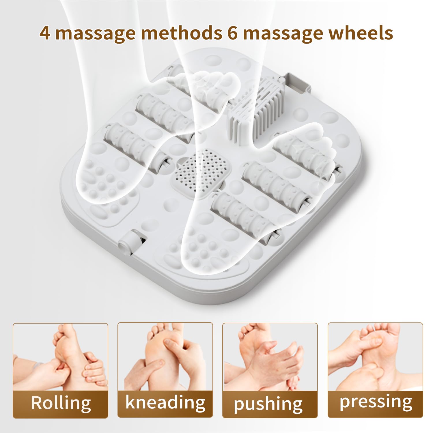 • Foot-Activated Massage Rollers s –With six rollers design of foldable foot massager , Allow the entire sole of the foot to enjoy the massage,providing a relaxing foot massage spa to relieve stress and fatigue. At the end of a long period of standing or walking, enjoy the perfect foldable foot spa.