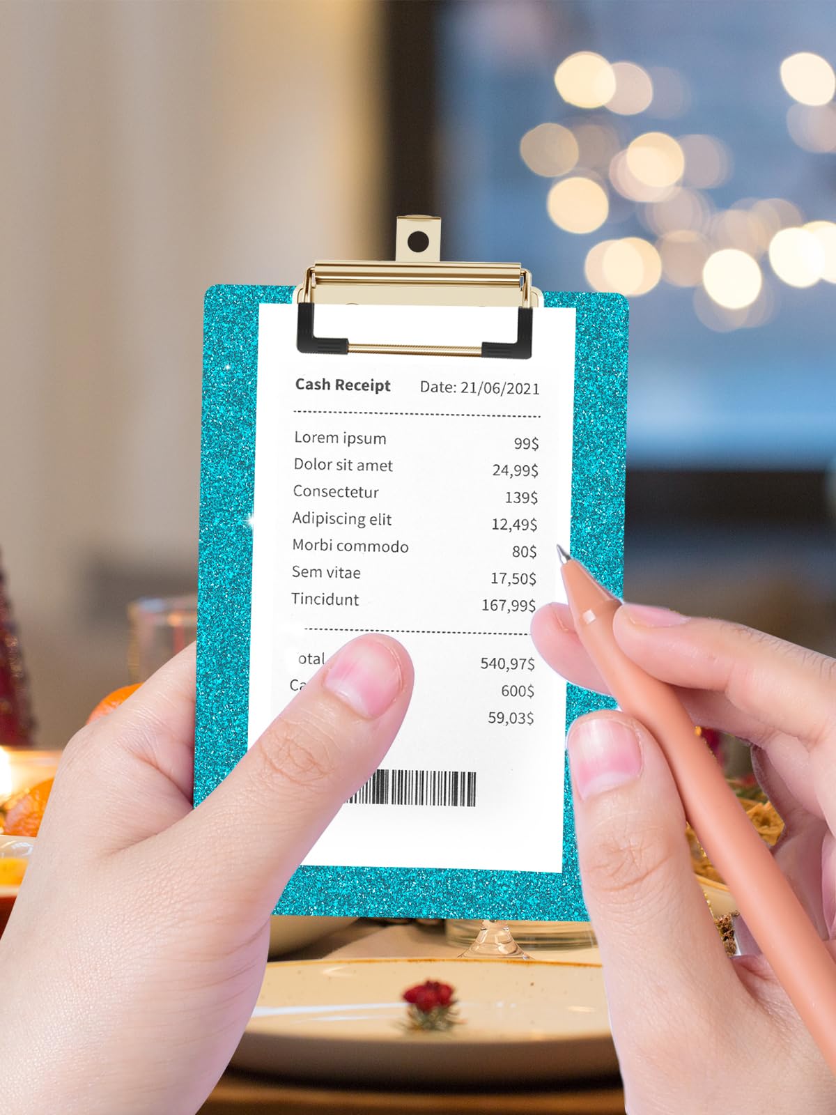 Acrylic Clipboards, Fashion Glitter Clipboard, Size 4" x 6", Cute Confetti Clipboards for Women, Desk Office Supplies and Accessories.Teal