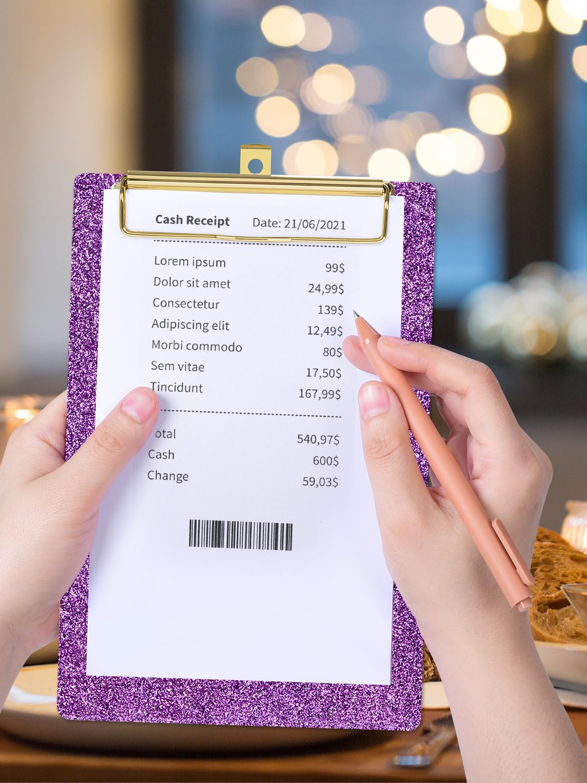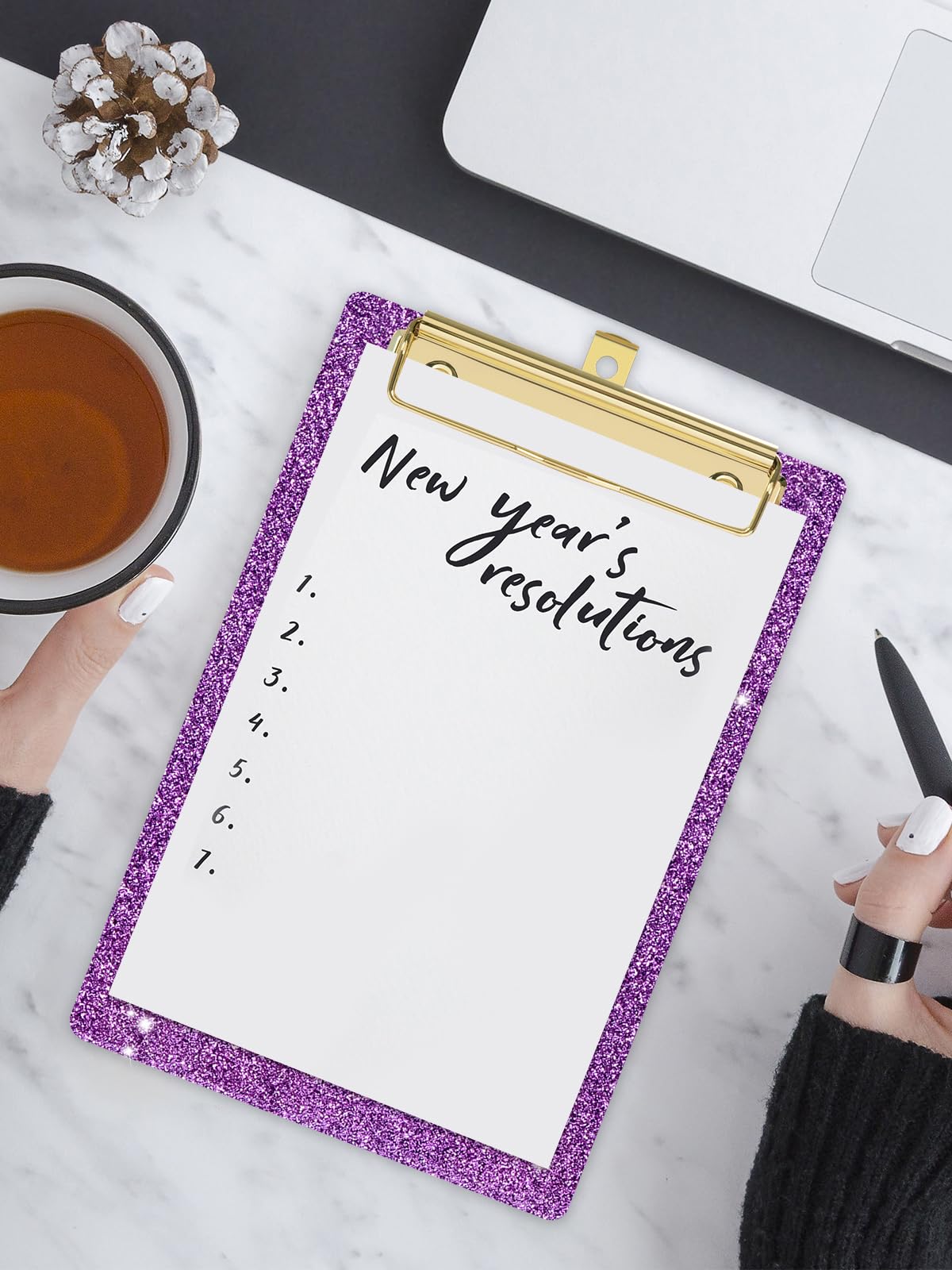 • 【Stylish Glitter Clipboard 】The colors of clipboard are bright and translucent. The gloss laminationay surface with glitter super shiny as holographic effect and the glitter body and gold Chip pairing gives it a stylish and elegant touch, which can make your work more enjoyable.