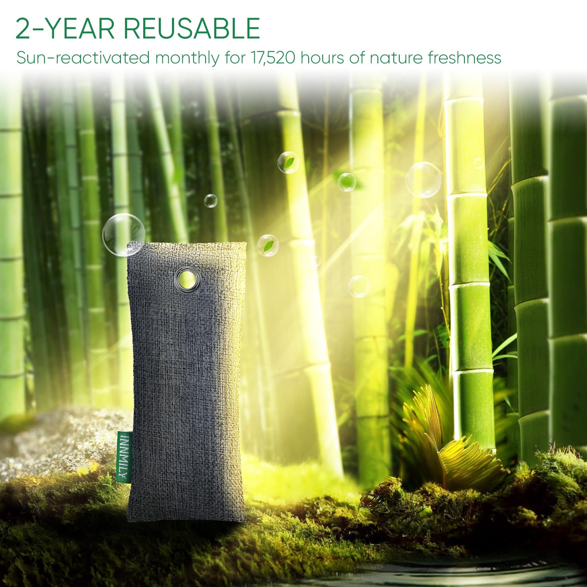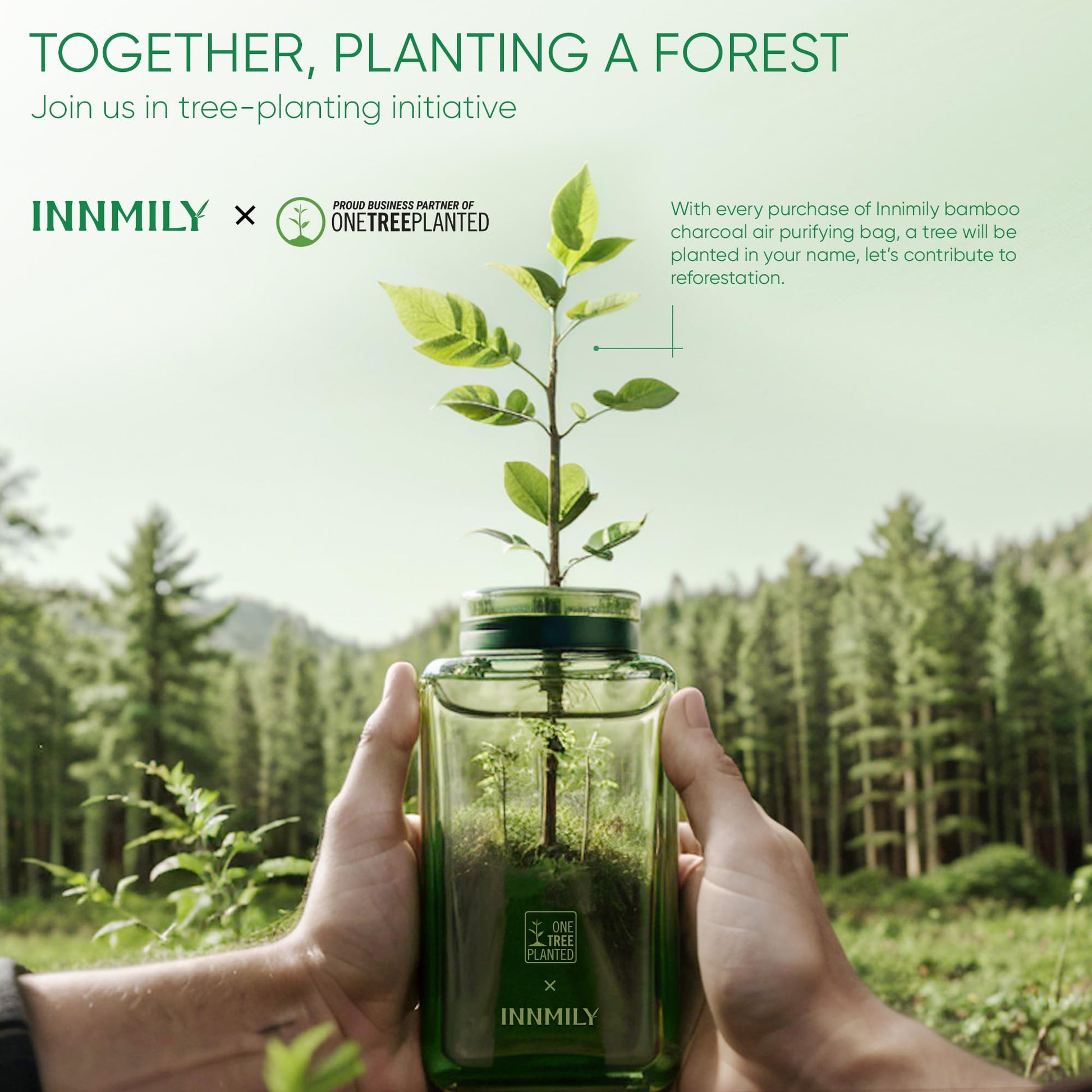 • TOGETHER, PLANTING A FOREST - We invite you to join us in tree-planting initiative - every purchase of Innimily bamboo charcoal air purifying bag, a tree will be planted in your name, let’s contribute to reforestation, aligning your well-being with environmental responsibility. natural solution that not only captures odors but also contributes to sustainability. Innmily bring nature and fresh air, we offer no question asked money-back, if you were not satisfied the charcoal air freshening bags