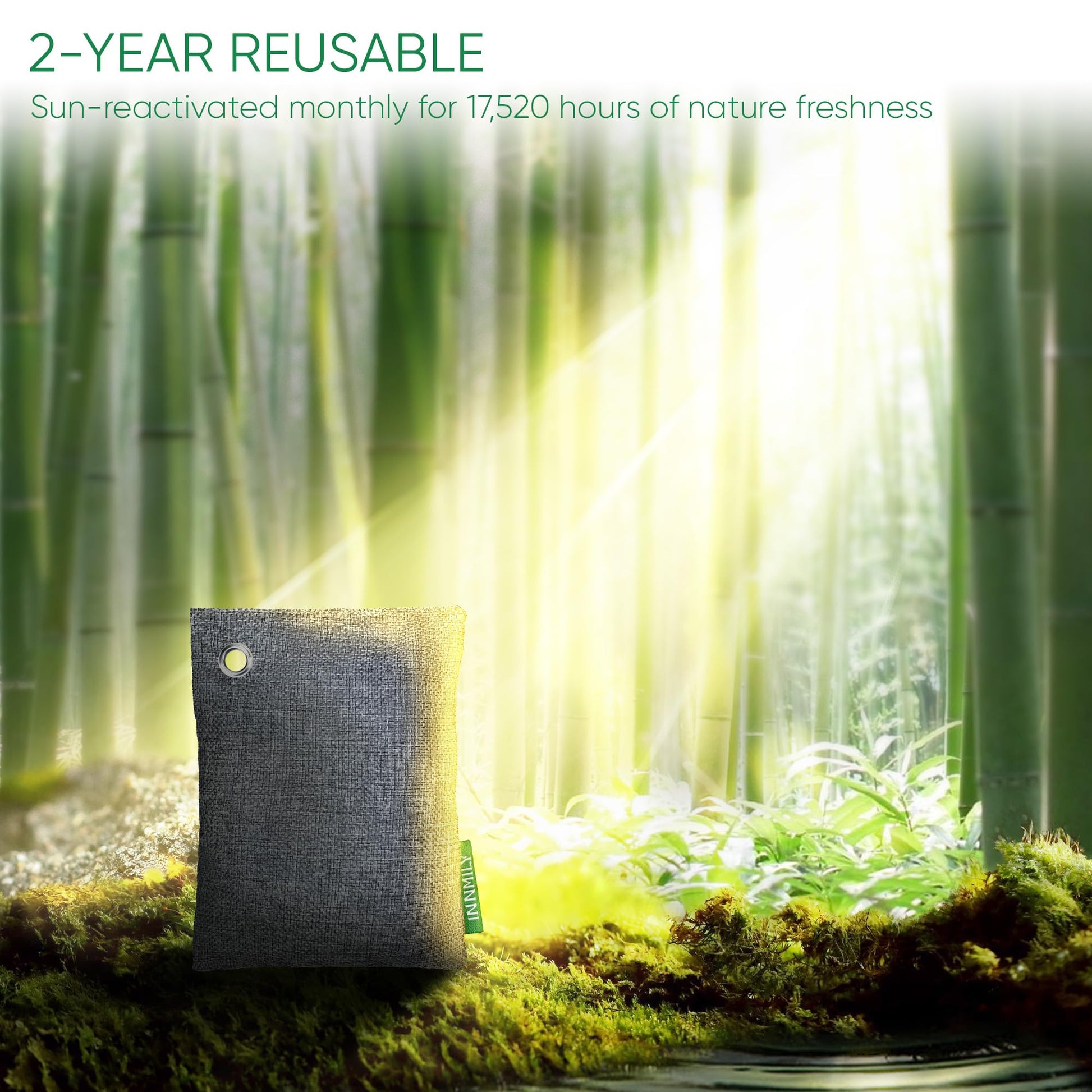 • 2 YEARS CONTINUOUS FRESHNESS - Revel in 17,520 hours of natural deodorizer odor eliminator! A simple monthly sunbath recharges the bags, making them a cost-effective choice for your pocket and a compelling one for the planet. activated charcoal air purifiers for bedroom and drawer deodorizers are also various for any space that need deodorizer, we recommend use multiple quantities for maximum deodorizing impact as smoke smell eliminator for home