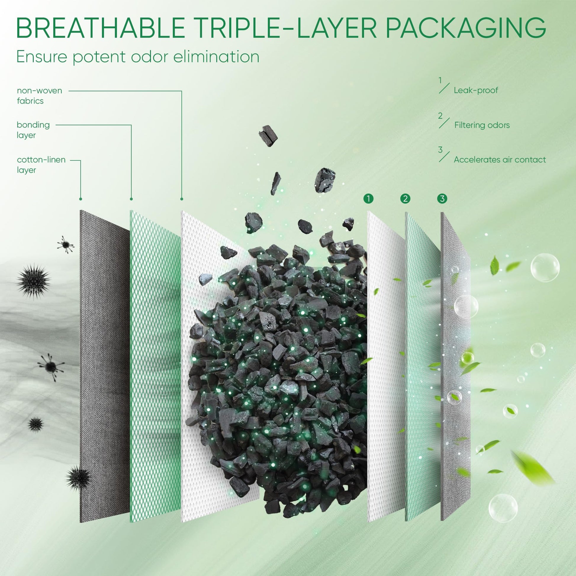 • THREE-LAYER DESIGN MEETS SUPERIOR ODOR ELIMINATION - Bamboo charcoal bags odor eliminator for home with breathable fabric prevents charcoal dispersion and accelerates air contact, filtering odors without compromising airflow, ensuring continuous and potent odor elimination for cigarette smoke odor absorber. All natural charcoal bags odor absorber without scent is safe air deodorizer for kids and pet-friendly, great for dog smell eliminator for home and cat litter odor eliminator