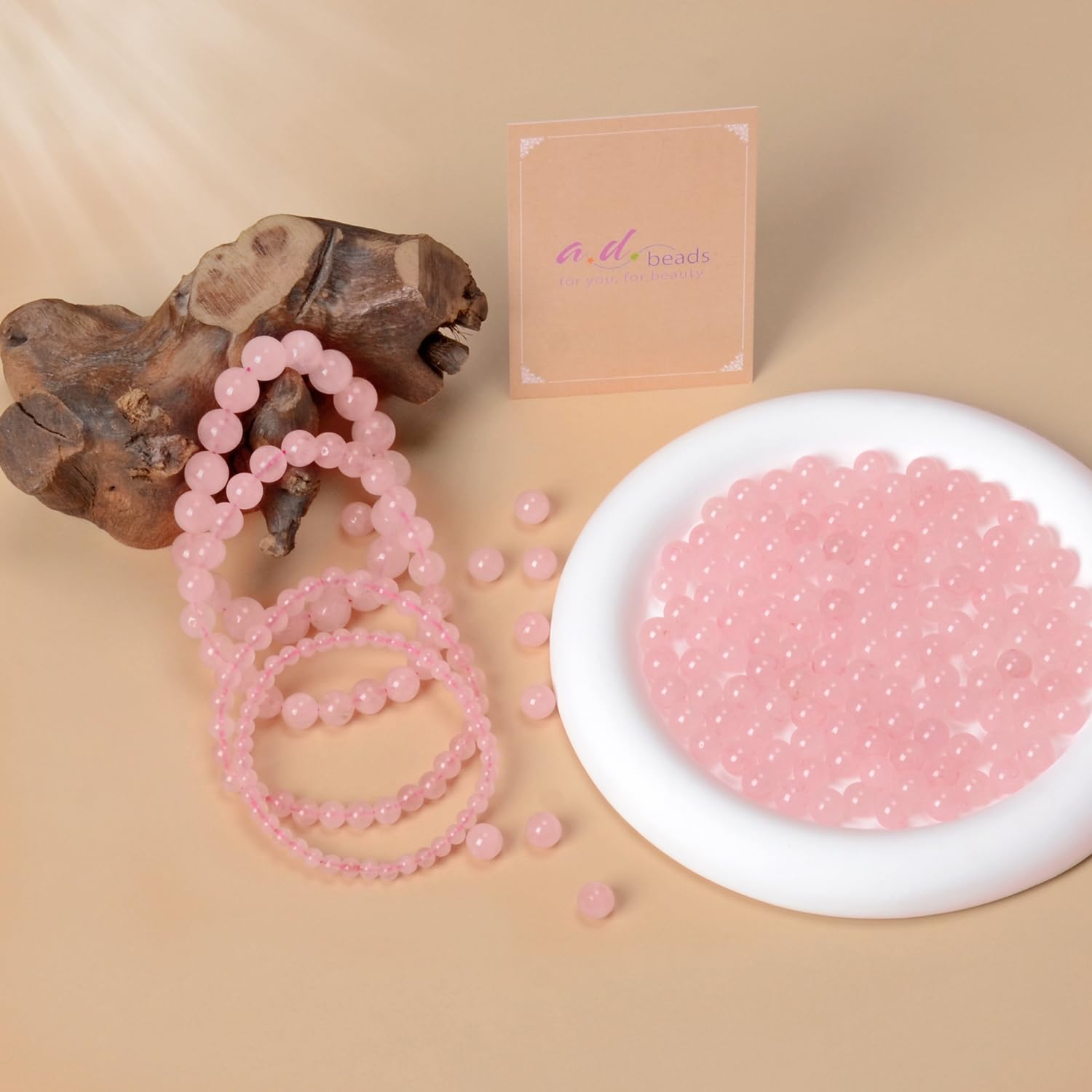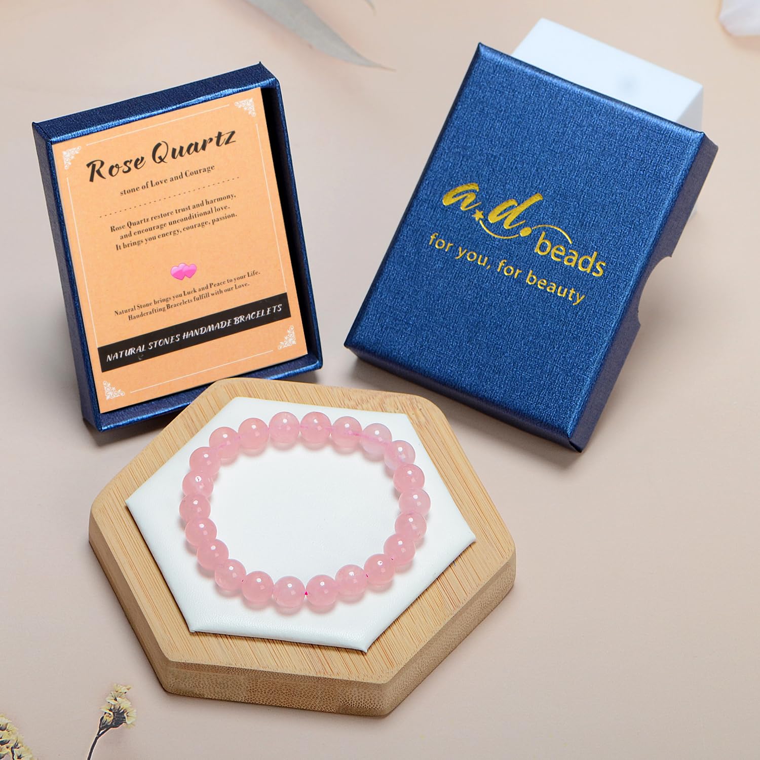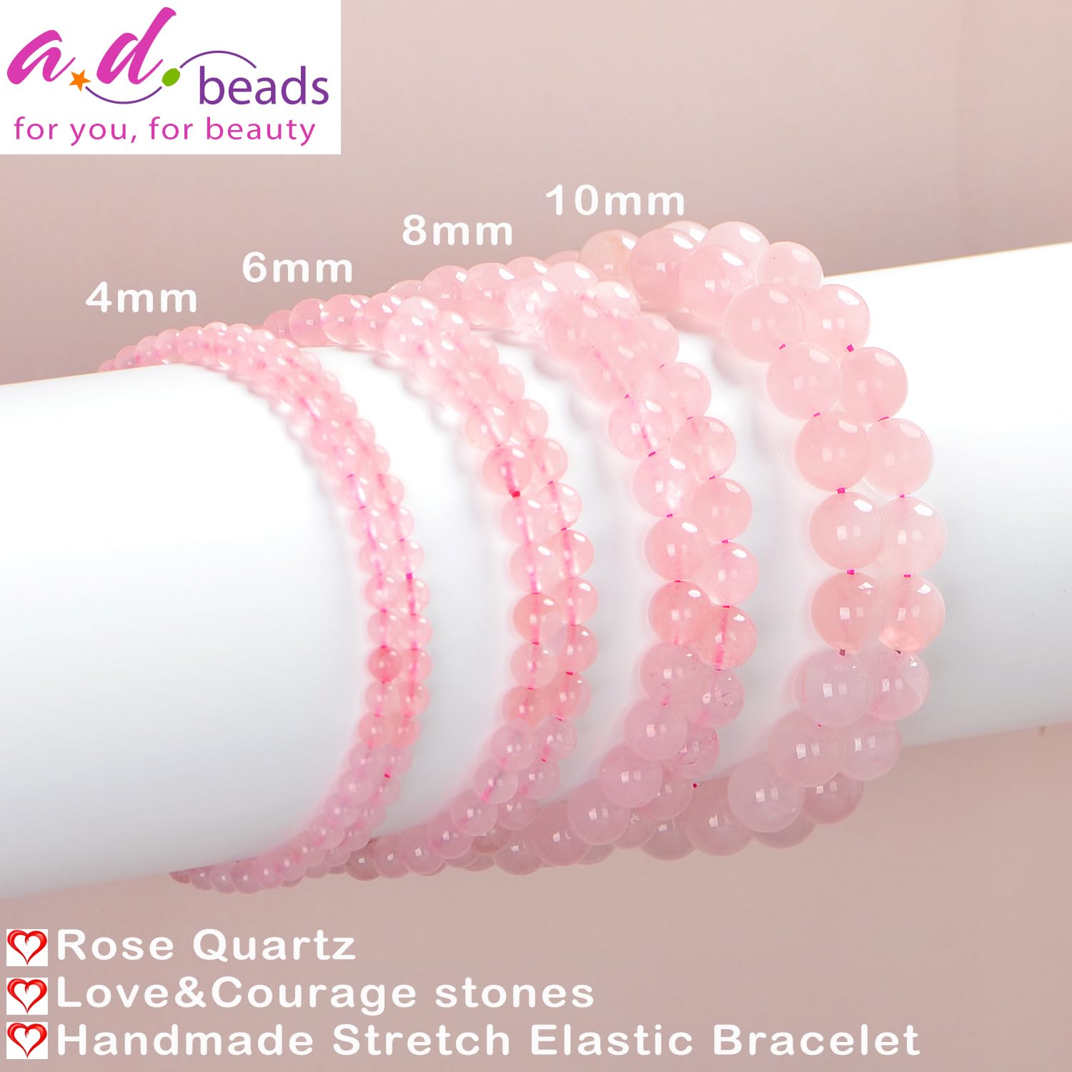 AD Beads Handmade Gemstone Stretch Elastic Bracelet Crystal Healing Reiki Nature's Beauty and Spiritual Essence Unisex (4mm, Rose Quartz)