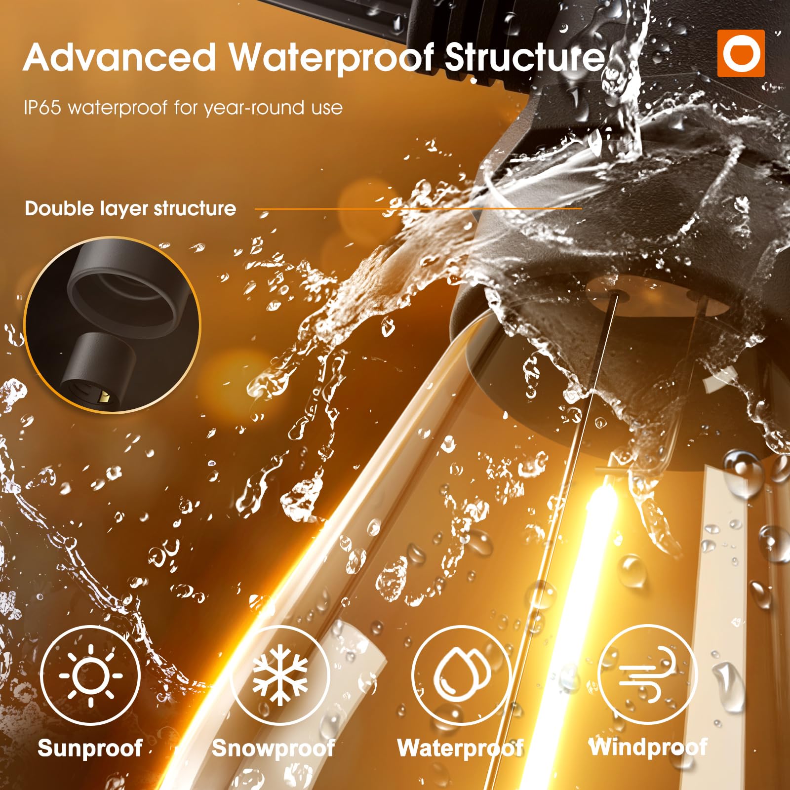 • Waterproof & ETL Certified: With a high waterproof rating of IP65, these weatherproof patio lights can withstand rain, sun, wind, snow, humidity, and extreme outdoor temperatures.