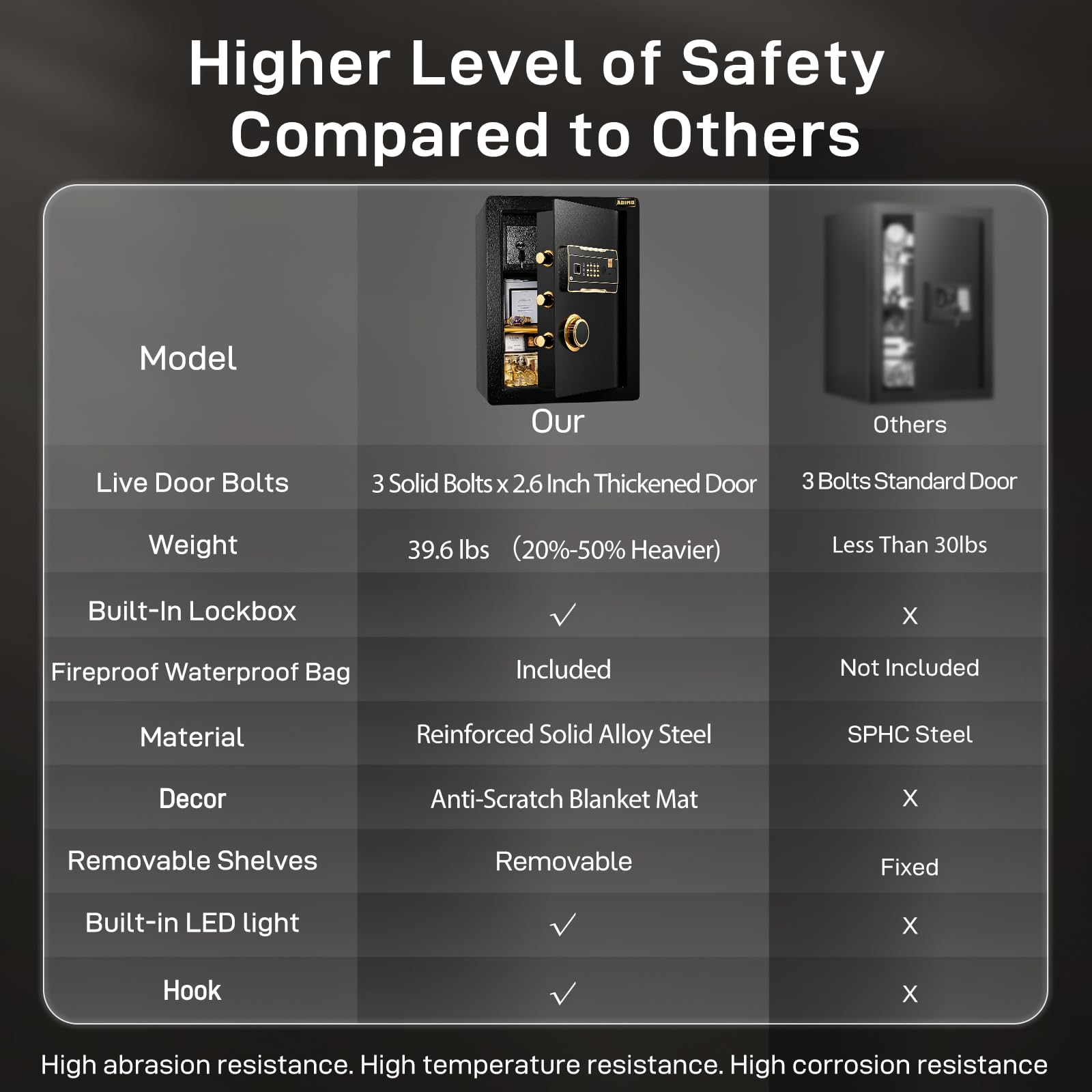 • Built-In Lockbox for Extra Security: The ADIMO home safes water and fireproof features a built-in lockbox, providing added security and organization. This small compartment keeps your valuables separate from other items, enhancing discretion and preventing clutter. With categorized storage, it makes finding your items quicker and easier while offering an extra layer of theft protection by keeping your valuables hidden.