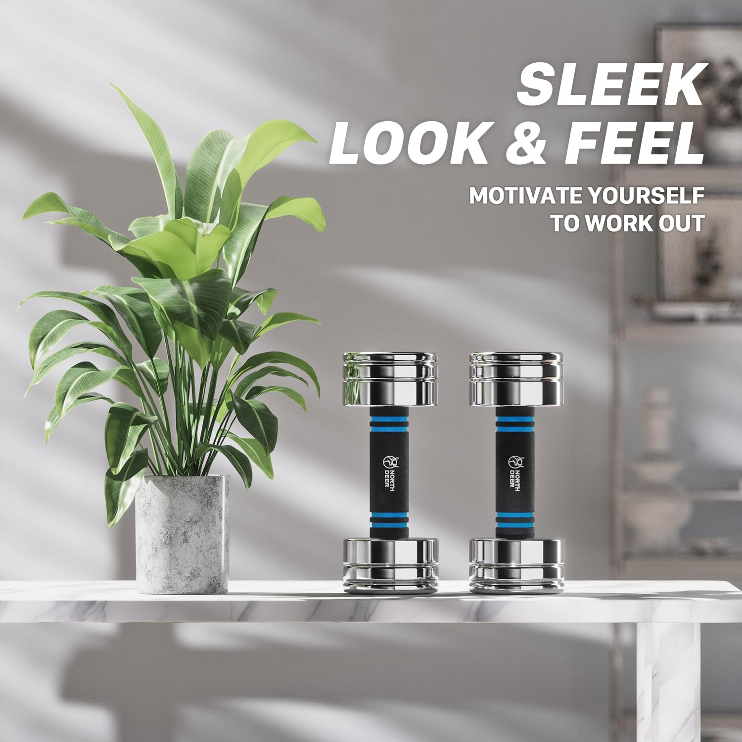 Adjustable Dumbbell Set 10lb Pair (5lb/7lb/8lb/10lb) Set of 2 Steel Dumbbells Chrome Weights with Foam Handles Home Gym Workout (Standard-Finish 10lb×2)