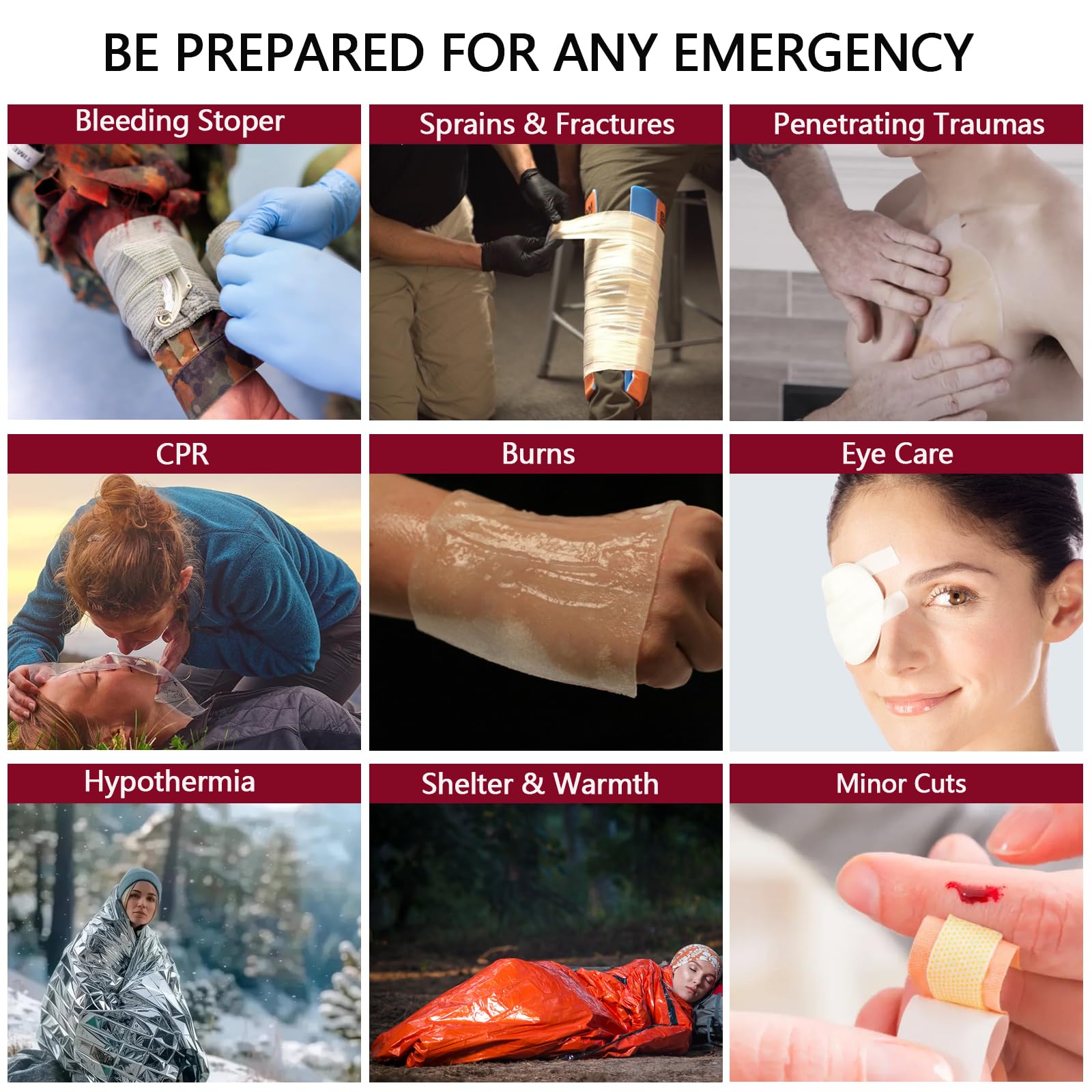 • First Aid Suppiles for Comprehensive Usability:This is a Premium first aid kit with advanced accessories upgraded by a professional team. Helps with emergency needs outdoors, home, or in the car, such as camping, hiking, or during hurricanes and tornadoes