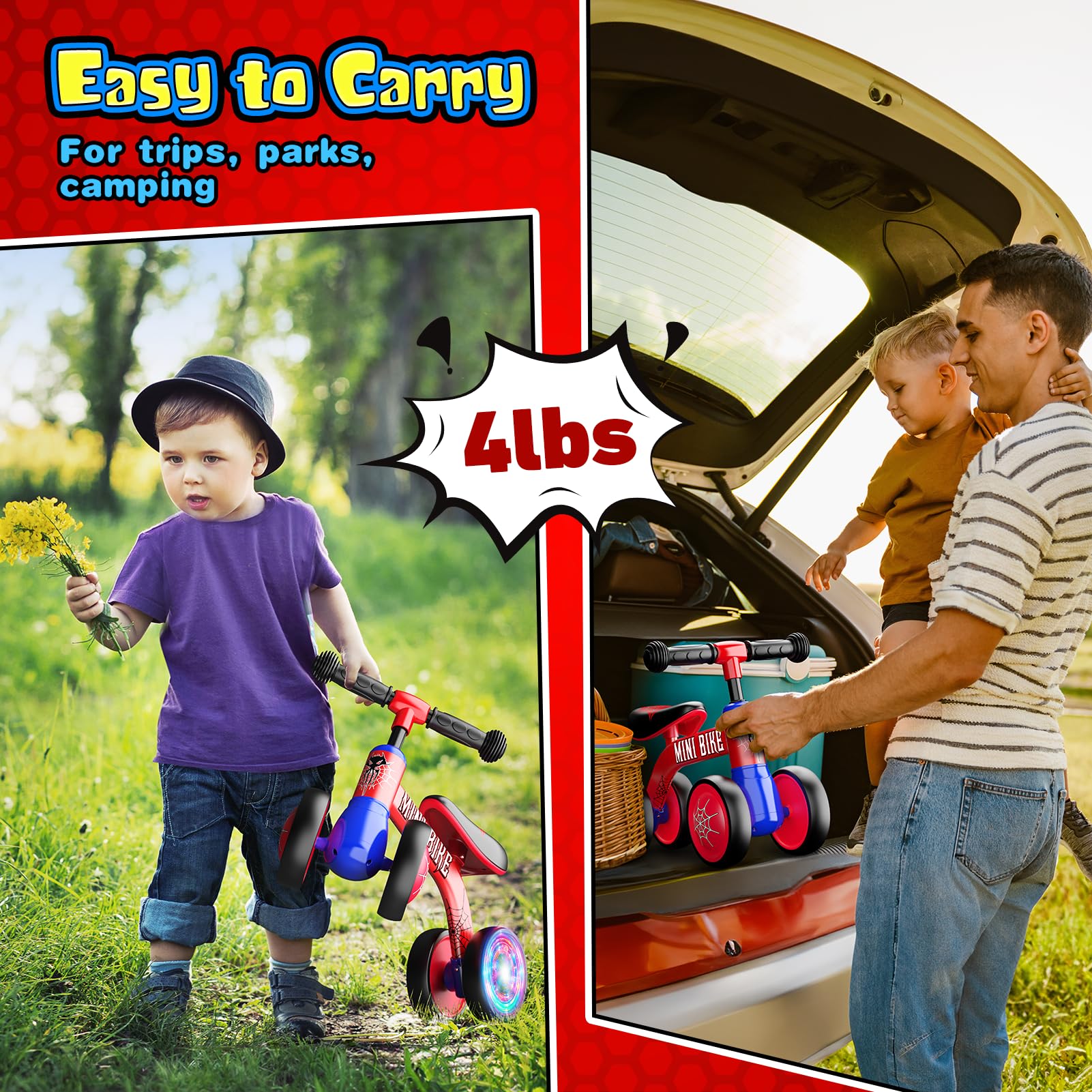 Aetyni Baby Balance Bike 1-2 Year Old: Spider Toddler Bike Baby Bike for 10-24 Month with Colorful Lighting & 4 Wheels First Riding on Toys Spider Easter Birthday Gifts for One Year Old Boy Girl Gifts