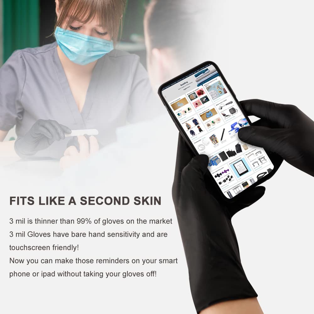 • 【Extra 6mil Thicker】The 6 mil cleaning gloves of upgraded material makes it superior to latex or vinyl gloves. In terms of disposable gloves, the branded cleaning tool can be worn trustingly even for professional uses. Stretchy black nitrile gloves in 10 inches comes in specialties of powder-free, ambidextrous and non-sterile plus impervious surface.
