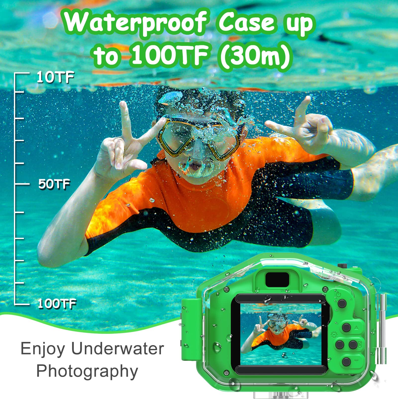 • Kids Waterproof Camera: This underwater case can provide excellent protection for camera from scratches and hit. Agoigo kids camera with the case installed, you can dive underwater up to 98ft. Perfect for swimming, surfing, diving. Important tips: Do does not open the waterproof case underwater
