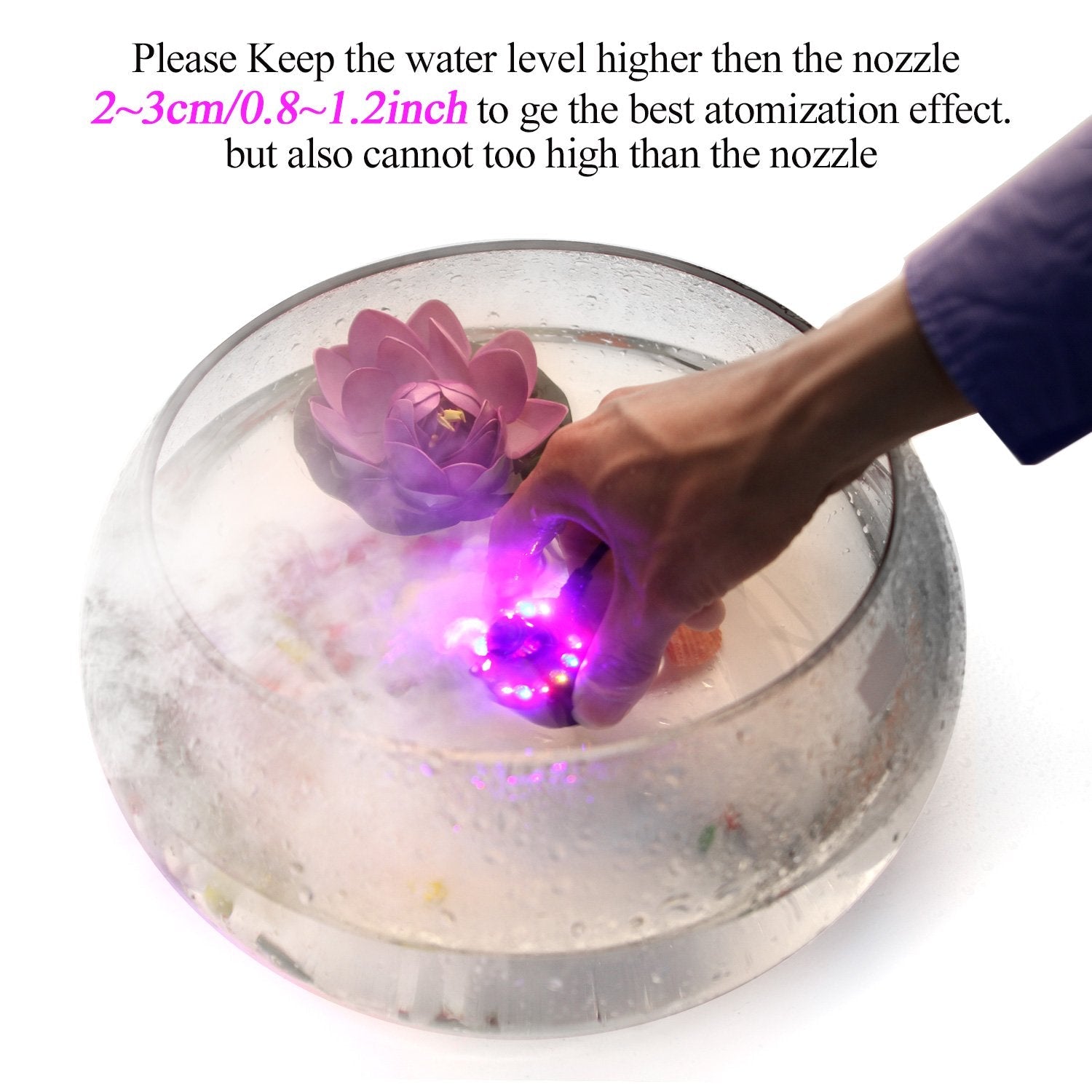 • ◆ SAFETY&EASY TO OPERATE - It is very safe to use. Put it in the water then the mist appears and the voltage is 24V so it’s safe to use.