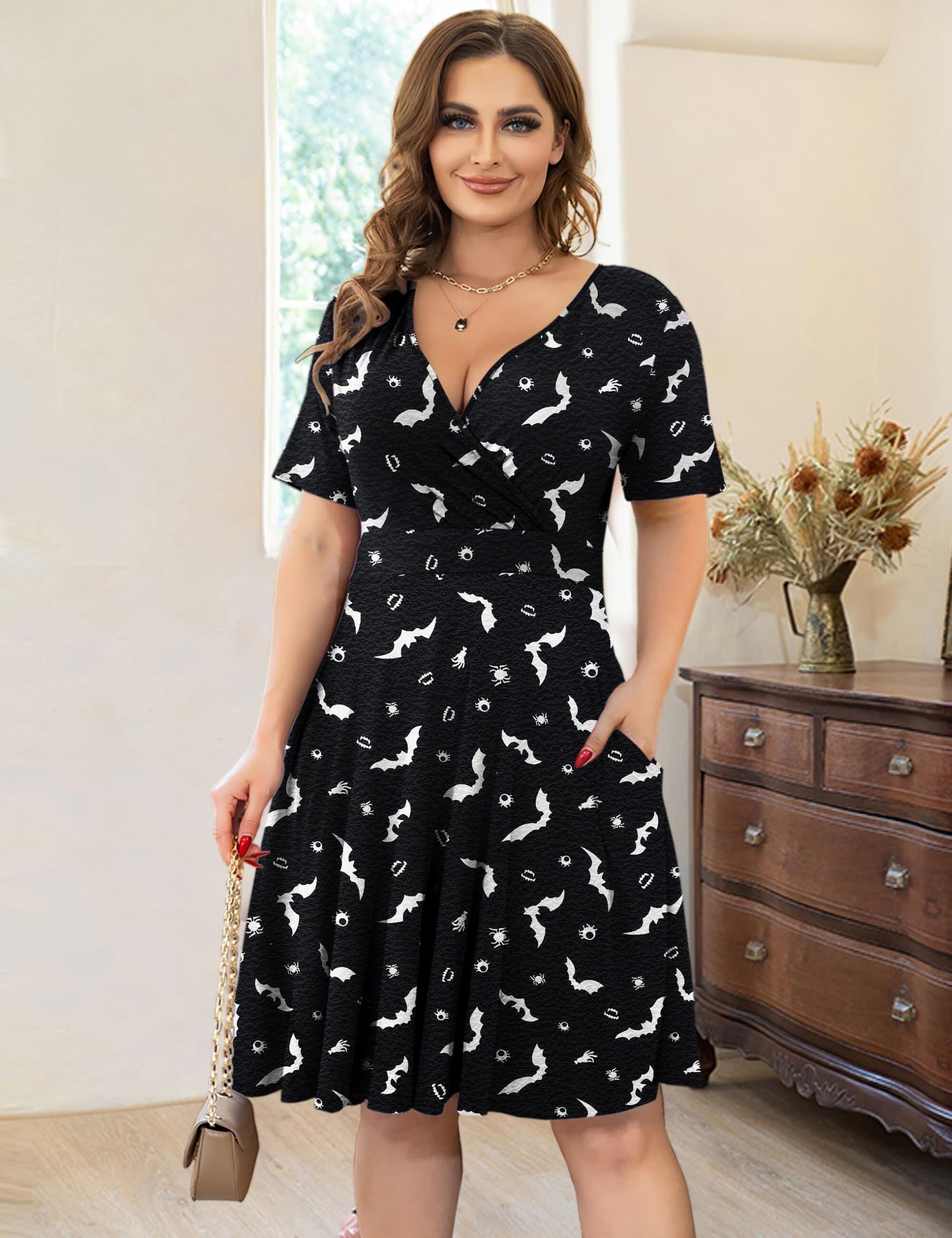 Ahlaray Plus Size Short Sleeve Dress Casual V Neck Halloween Dress for Women with Pockets, 03, XL