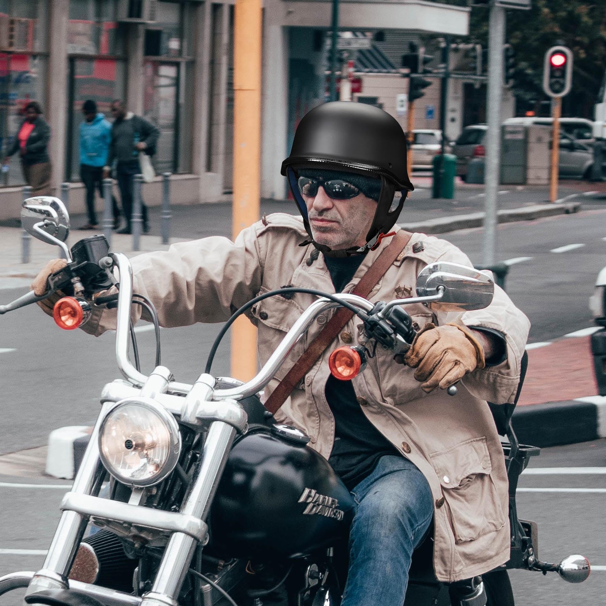 • [Retro Style Half Helmet]: AHR RUN-G Half Face Helmet comes in a retro German style combining low-profile design and matte black finish for avoiding scratches and fingerprints, presenting a subtle, understated look that never goes out of date; Features full-ventilated half-face design for keeping you cool and comfortable while riding chopper, cruiser, scooter and more