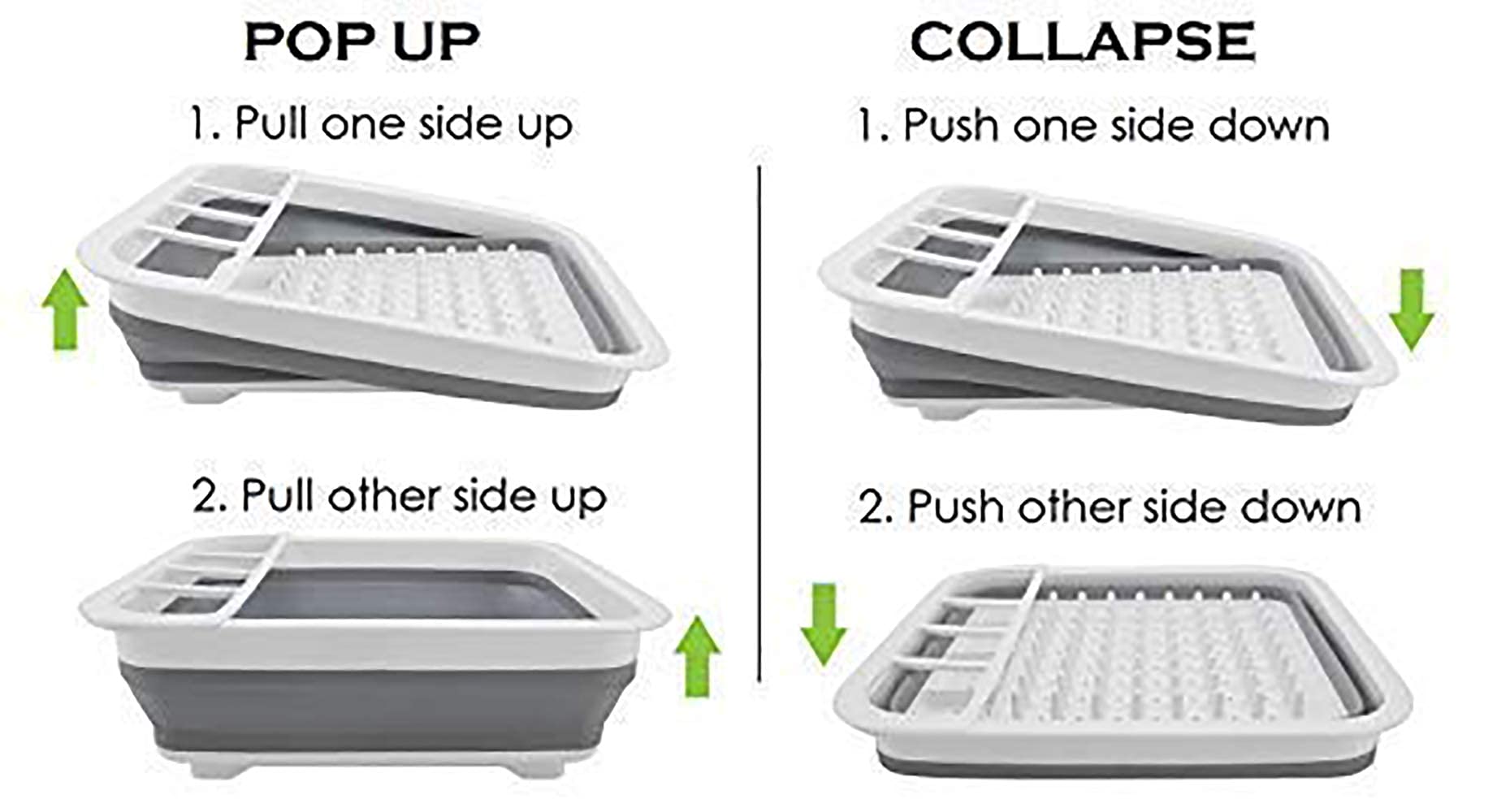 • Ergonomical User Friendly Design rv accessories for inside collapsable dish drainer: Simply pop-up to open when using and collapses to flat for space saving with spread size: 14.4'(L) x 12.4'(W) 5.1'(H) and its height just 2.1inches after collapsing for easy storage under the sink, great for camper decor