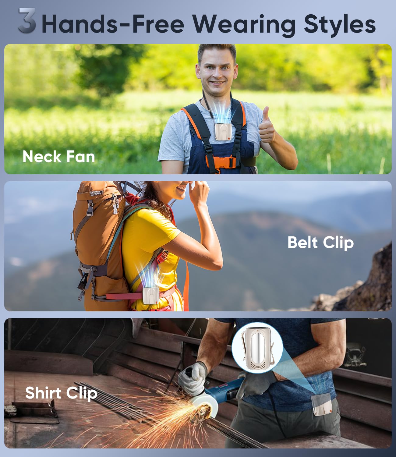 • [Super Easy to Use] Not only a portable waist fan, but also a 4-in-1 cooling device that can be used as a neck fan, desk fan, and handheld fan. This unique waist clip fan adopts a dual-clip design. Just clip the large clip on your belt and the small clip on your shirt, turn on the Tedajo body fan - the wind blows instantly!