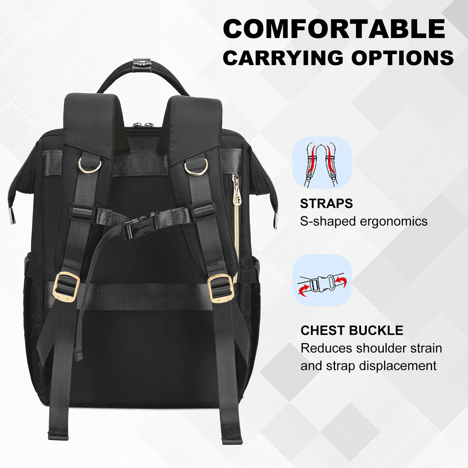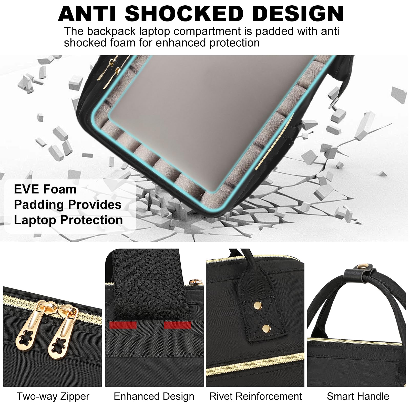 • 【Large Capacity & Multi-Pocket Design】Our laptop backpack features 1 main compartment and 3 zipper compartment pockets as well as 11 inner pockets and 2 side pockets, providing perfect protection for your 15.6-inch computer and place Your tablet, textbook, A4 folder, wallet, tissues, pens, clothes, sunglasses, bottles, etc. You can use this lunch backpack as a multifunctional women's backpack for teachers, college, nurse, work, travel, etc.