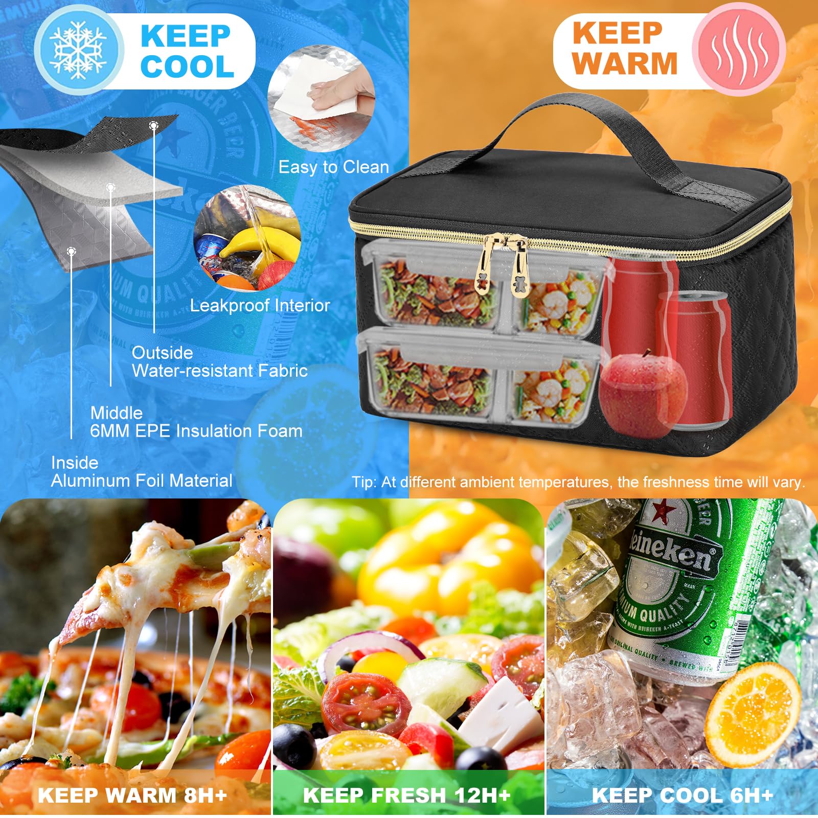 • 【Lunch Backpack with Insulated Lunch Cooler Bag】The lunch bag can be taken out from the women's laptop backpack and used separately. The outer layer of the lunch box is made of durable nylon Oxford cloth and 6MM EPE insulation material, and the aluminum PEVA seamless heat-pressed lining is leak-proof and waterproof. It can keep food cold, hot or fresh for more than 6-14 hours, perfect for work and picnics. , beach trips, festivals and city commutes, enjoy delicious fresh food.