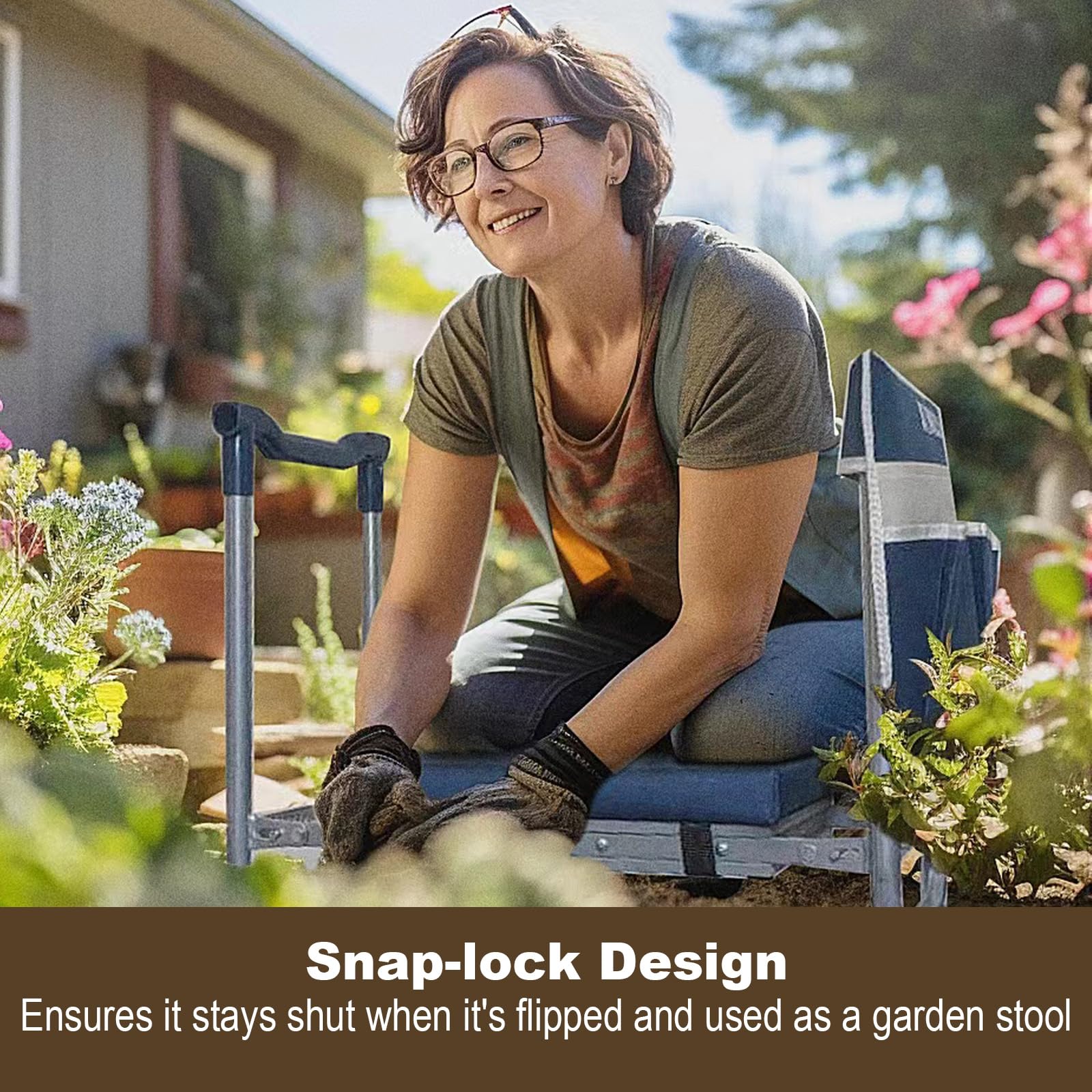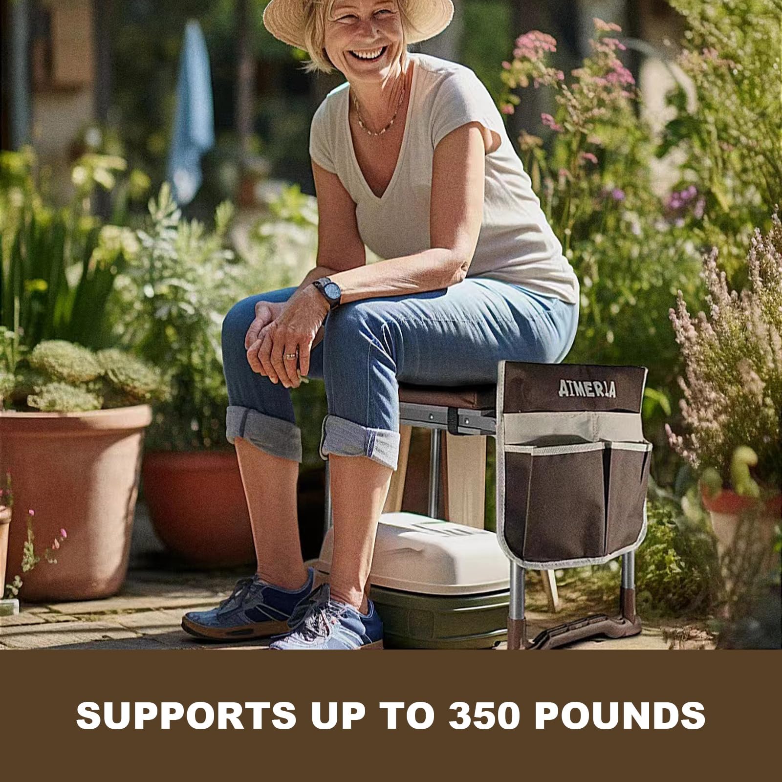• Unbreakable, Foldable, and Ready-to-Go! Our garden kneeler is as sturdy as your grandma's oak tree swing, supporting up to 350 pounds with ease.. It's ready-to-use, no assembly required – just unfold, and voilà! And, guess what? It's not just a kneeler; it's a garden stool too! Snap-lock it, and you're all set for a throne-like experience. Aimerla Kneeler: making gardening chic and a breeze. Aimerla Kneeler: making gardening chic and a breeze