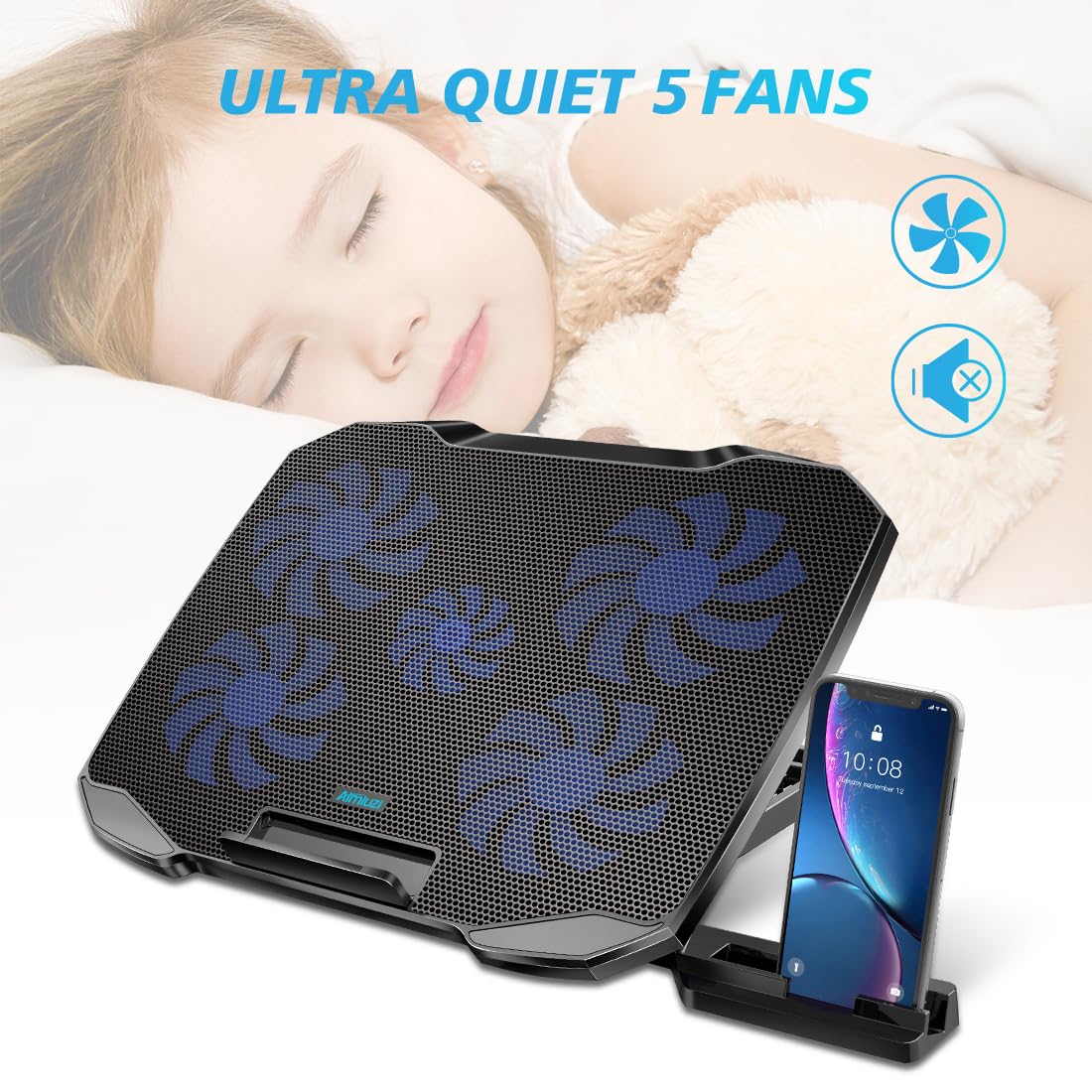 AIMIUZI Laptop Cooling Pad Laptop Cooler Stand, Laptop Fan Cooling Pad for 12-15.6 Inch Laptop Notebooks, 5 Quiet Fans, 5 Angle Adjustable Laptop Cooling Stand (Black)