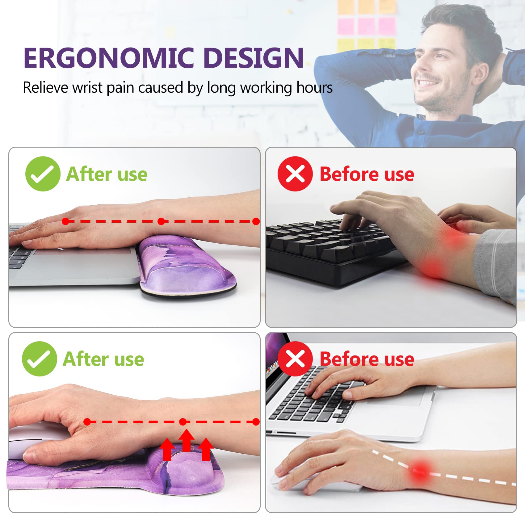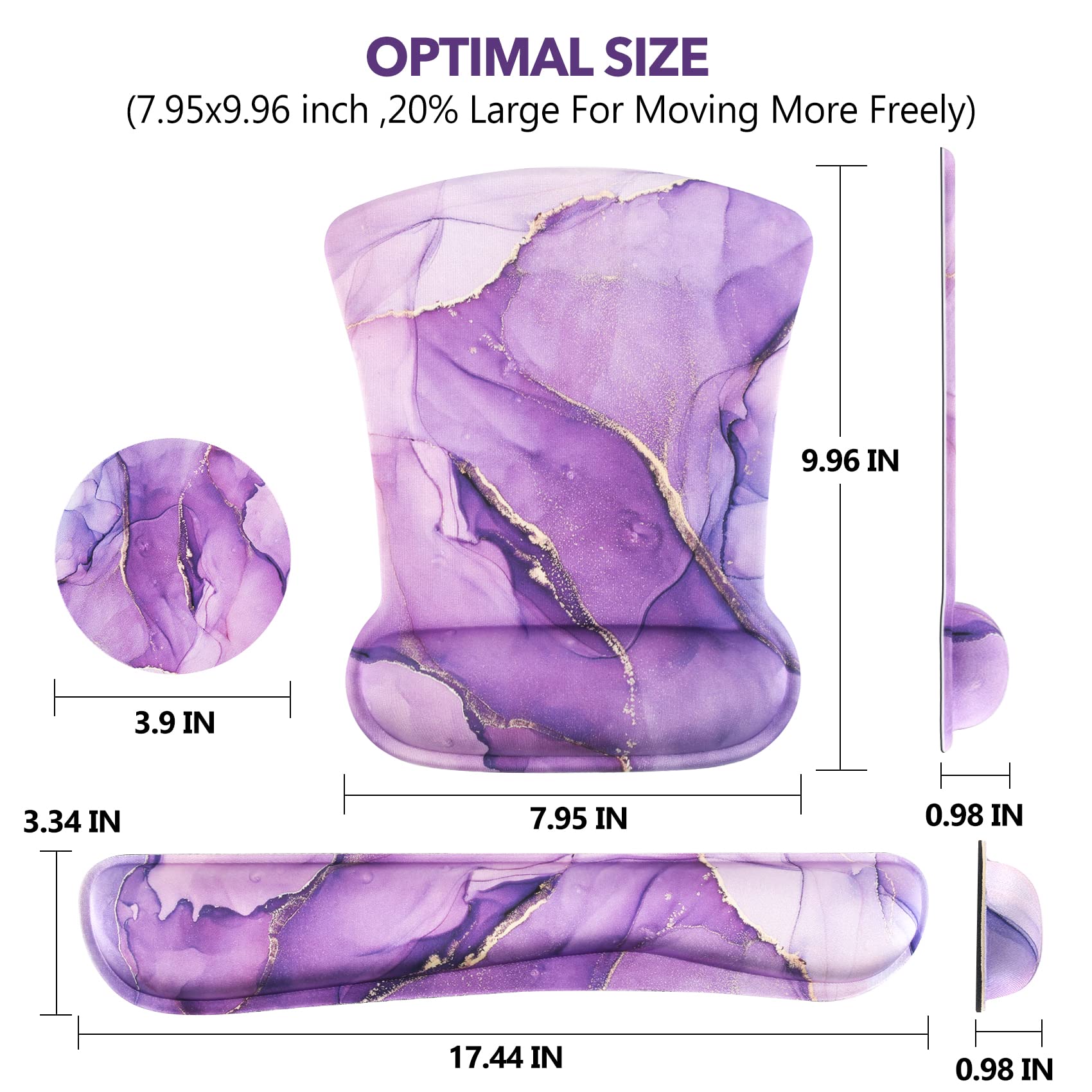 AIMSA Ergonomic Keyboard Wrist Rest and Mouse Pad with Wrist Support Set, Memory Foam Non-Slip Rubber Base, for Home, Office, Easy Typing, Pain Relief, Purple Marble