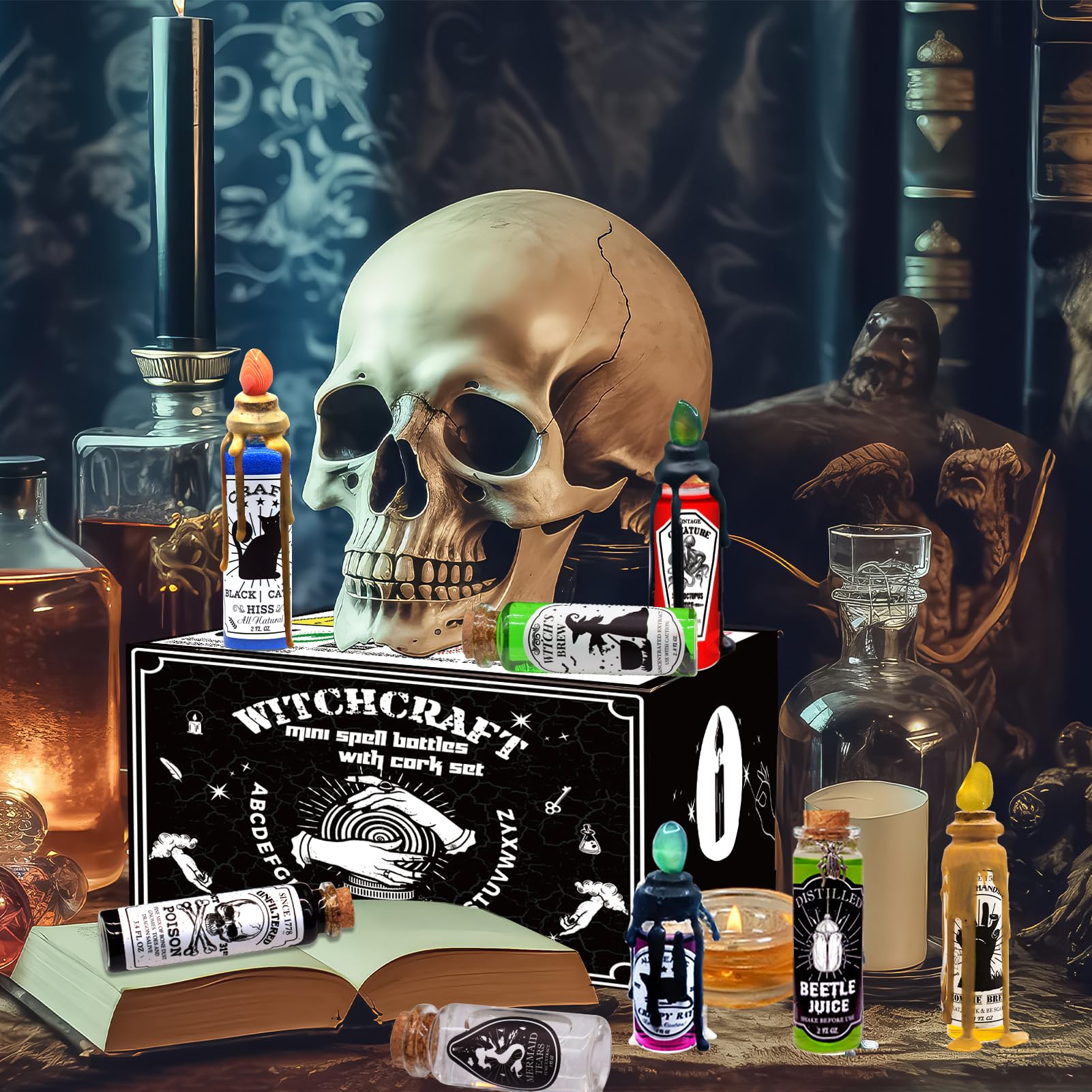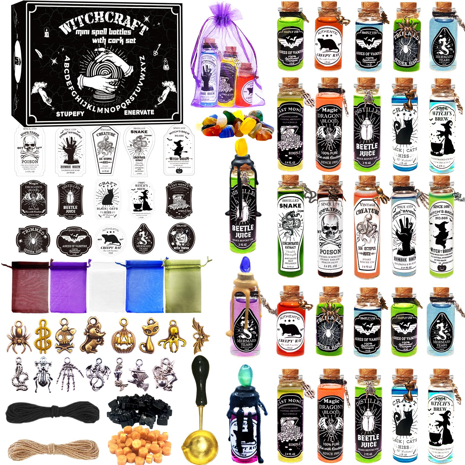 Ainswei Halloween Decorations Indoor,135Pcs Potion Bottles Halloween Decor,Witch Halloween Decorations with Stone,Apothecary Witch Lables Decoration For Home Room Party Supplies