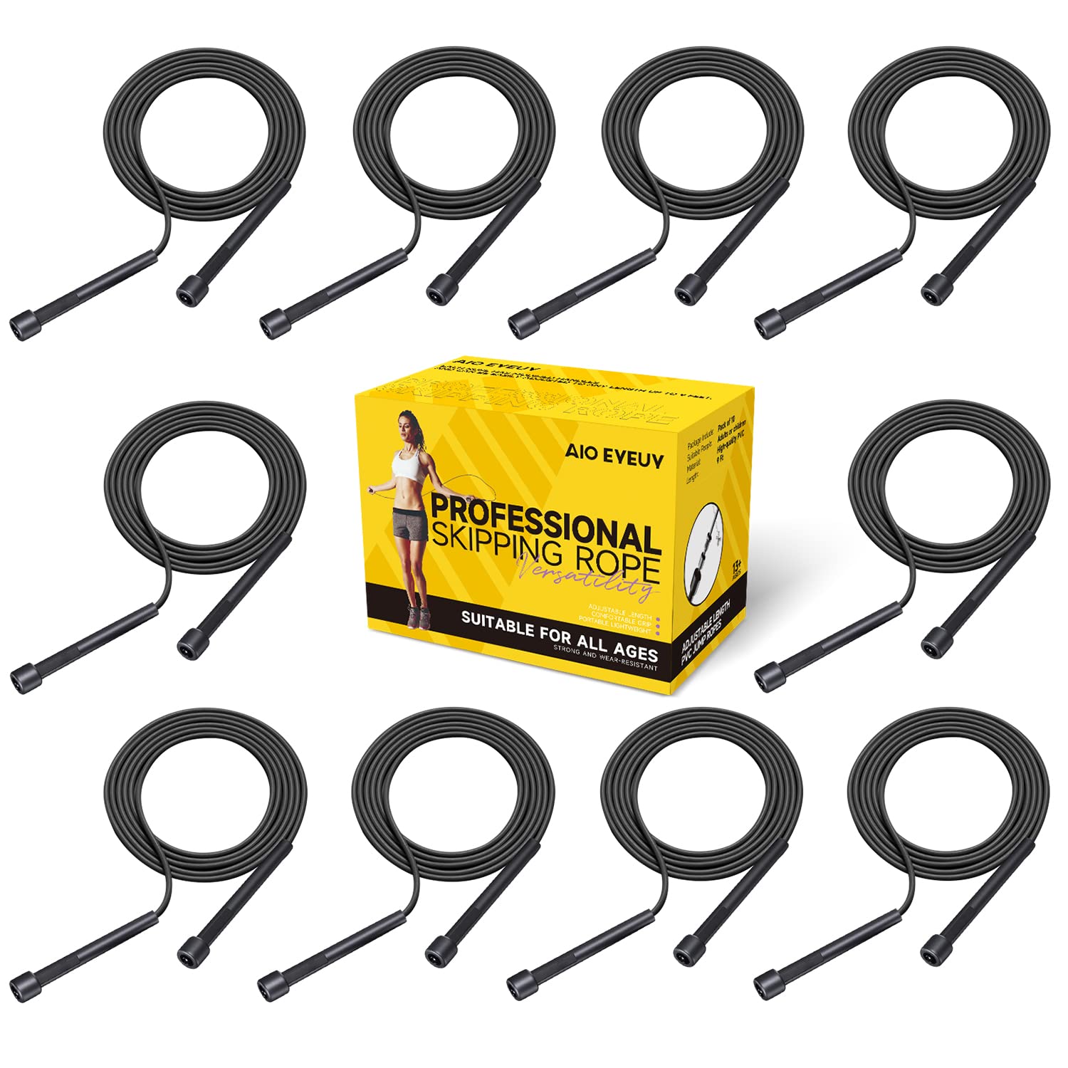 AIO EYEUY Adjustable Jump Rope for Fitness and Exercise-PVC Skipping Rope for Men,Women and Kids-Tangle-Free for Keeping Fit, Training, Workout 10 Pack Black