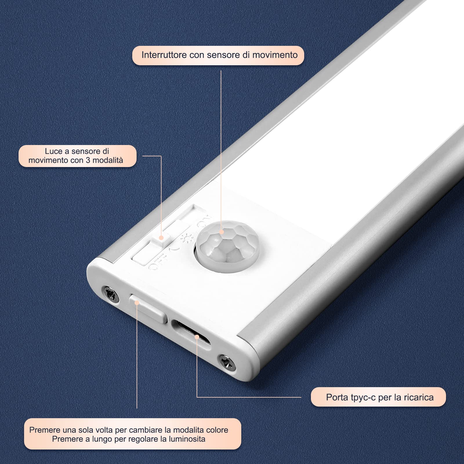 AiQInu 146 LED Cabinet Light with Motion Sensor, USB Rechargeable LED Under Cabinet Light, 40 cm Dimmable Cabinet Light with Magnetic Strip Sticker for Kitchen, Stairs, Corridors