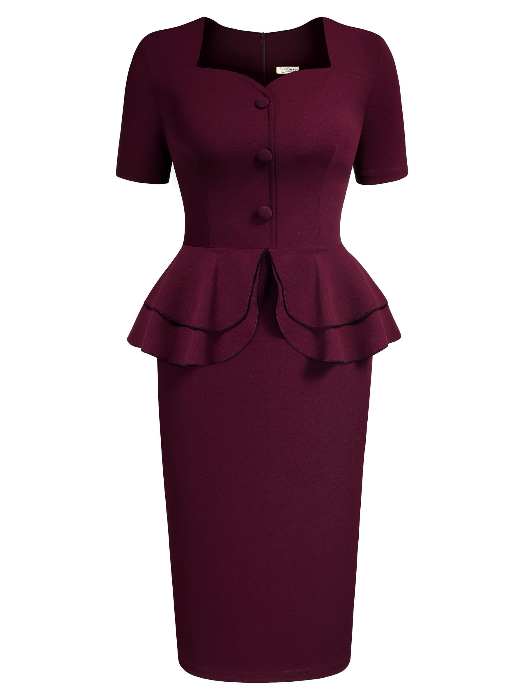 AISIZE Women's 1940s Vintage Square Peplum Bodycon Cocktail Dress XX-Large Burgundy