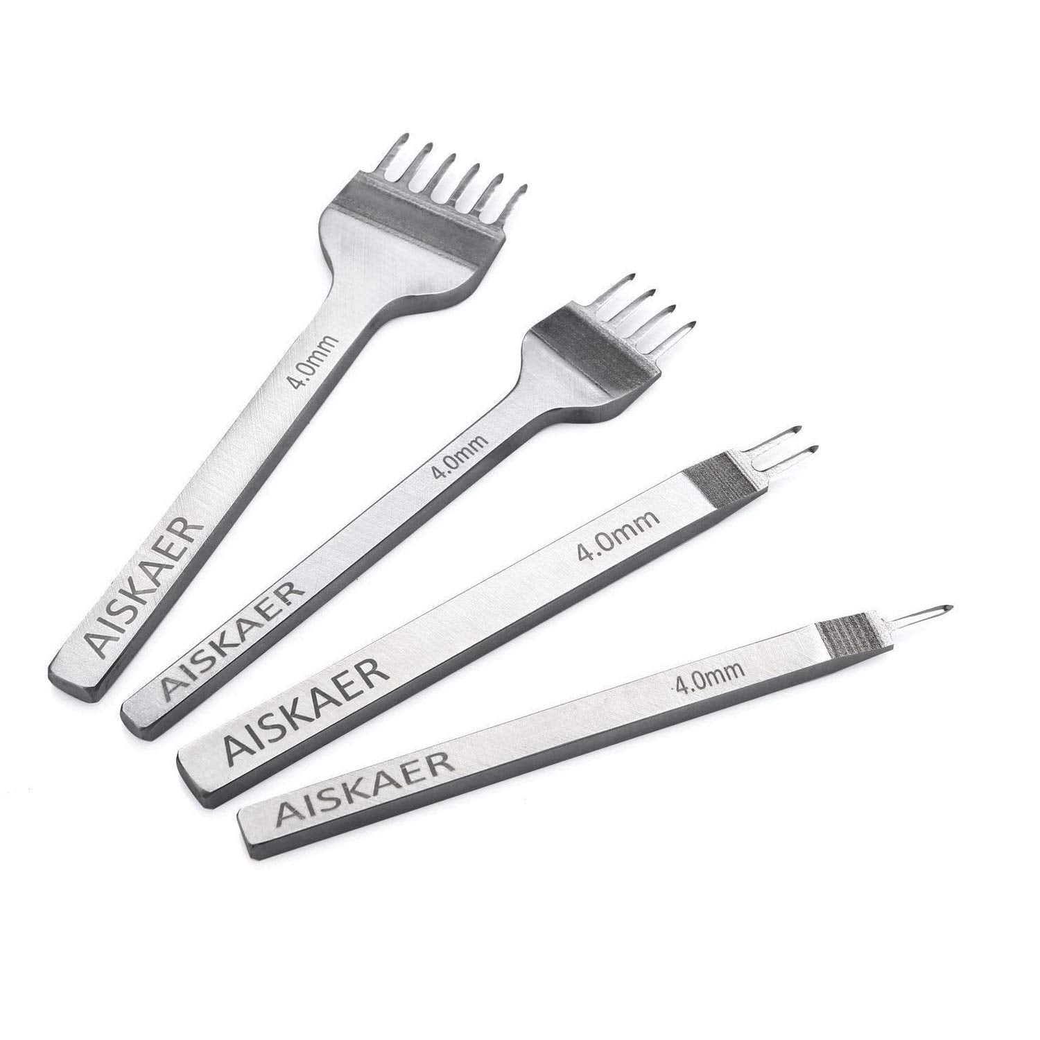 Aiskaer Leather Stitching Punch Set, Diamond Chisel Tools, 4mm White Steel 1/2/4/6 Prong for Leather Craft DIY
