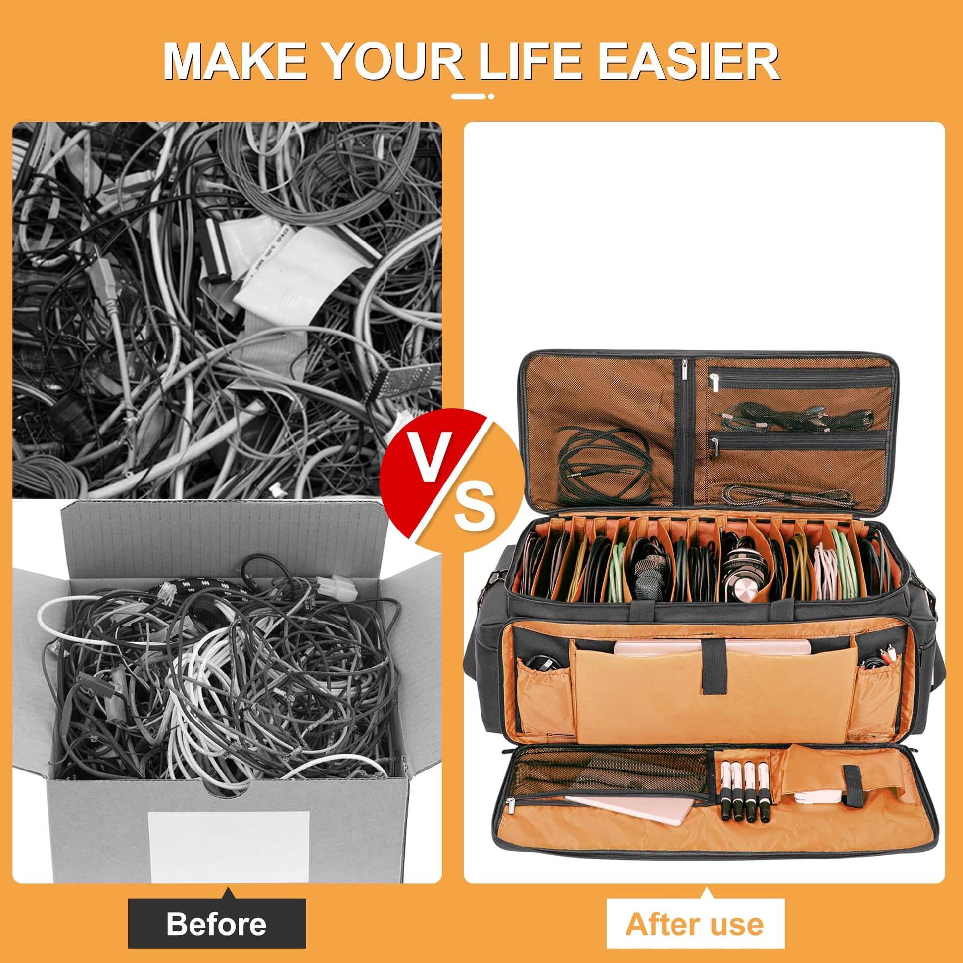 Details: AKOZLIN Cable File Bag with Detachable Dividers, DJ Gig Bag Cord Organizer Case for Laptop,DJ Gear, Sound Instrument and Music Equipment Accessories Black Orange