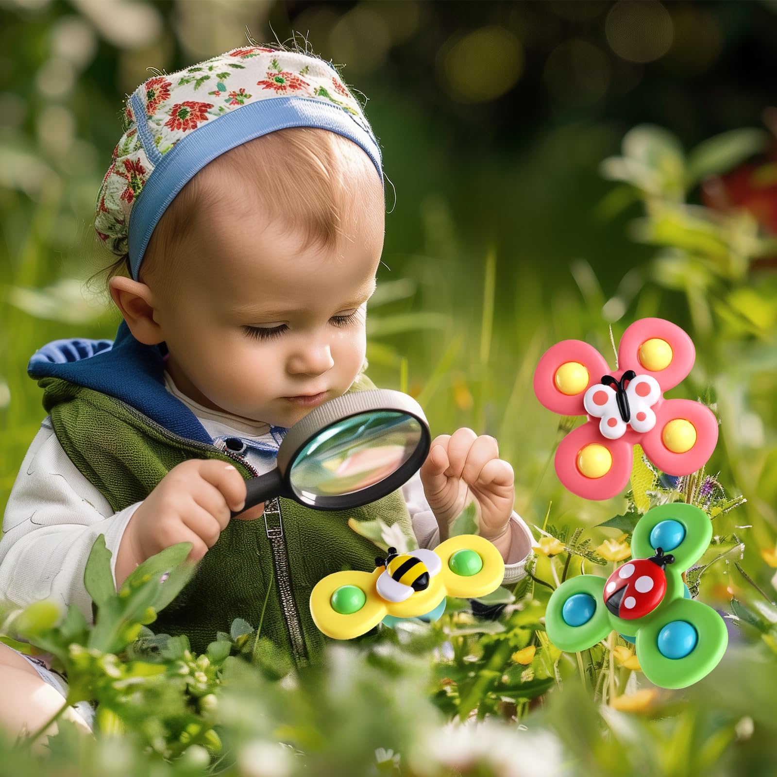 ALASOU 3PCS Suction Cup Spinner Toys for 1 Year Old Boy Girl|Spinning Top Baby Toys 12 18 Months|1 2 Year Old Boy Birthday Gift|Baby Bath Toy for Kids Ages 1-3|Sensory Toy for Toddlers 1-3