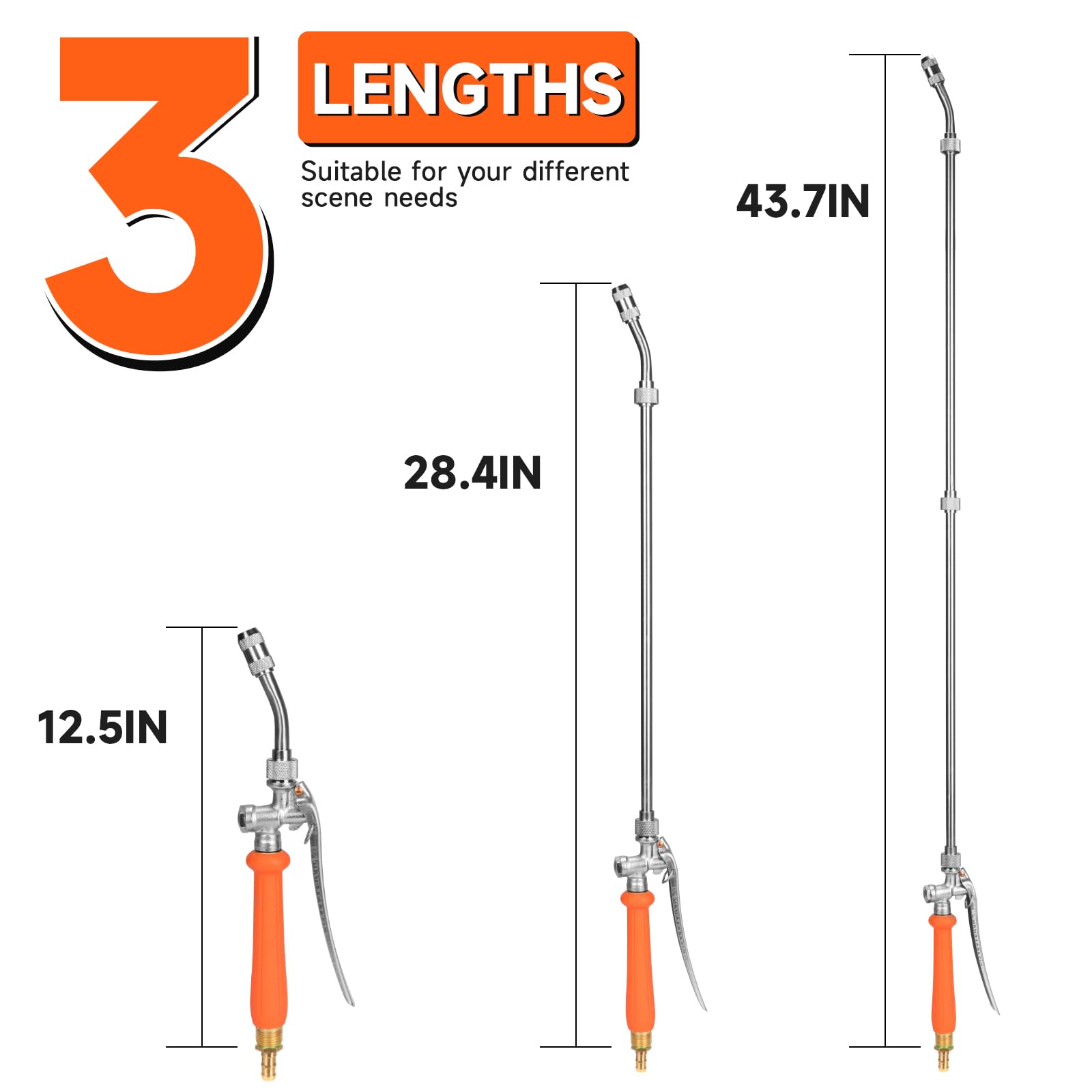 • 【3 different length options】The product offers three combinations of length options, 13'', 29'' and 44'', meet different scene requirements, especially for watering high-altitude plants. Suitable for quick cleaning of stubborn stains in gardens, gutter, patio, cars, pets, window and large areas.
