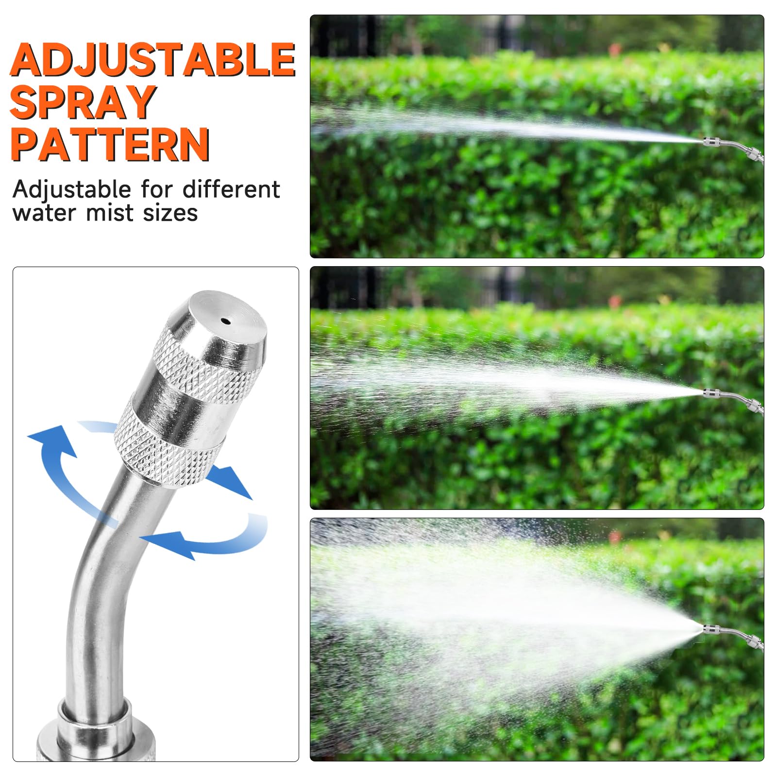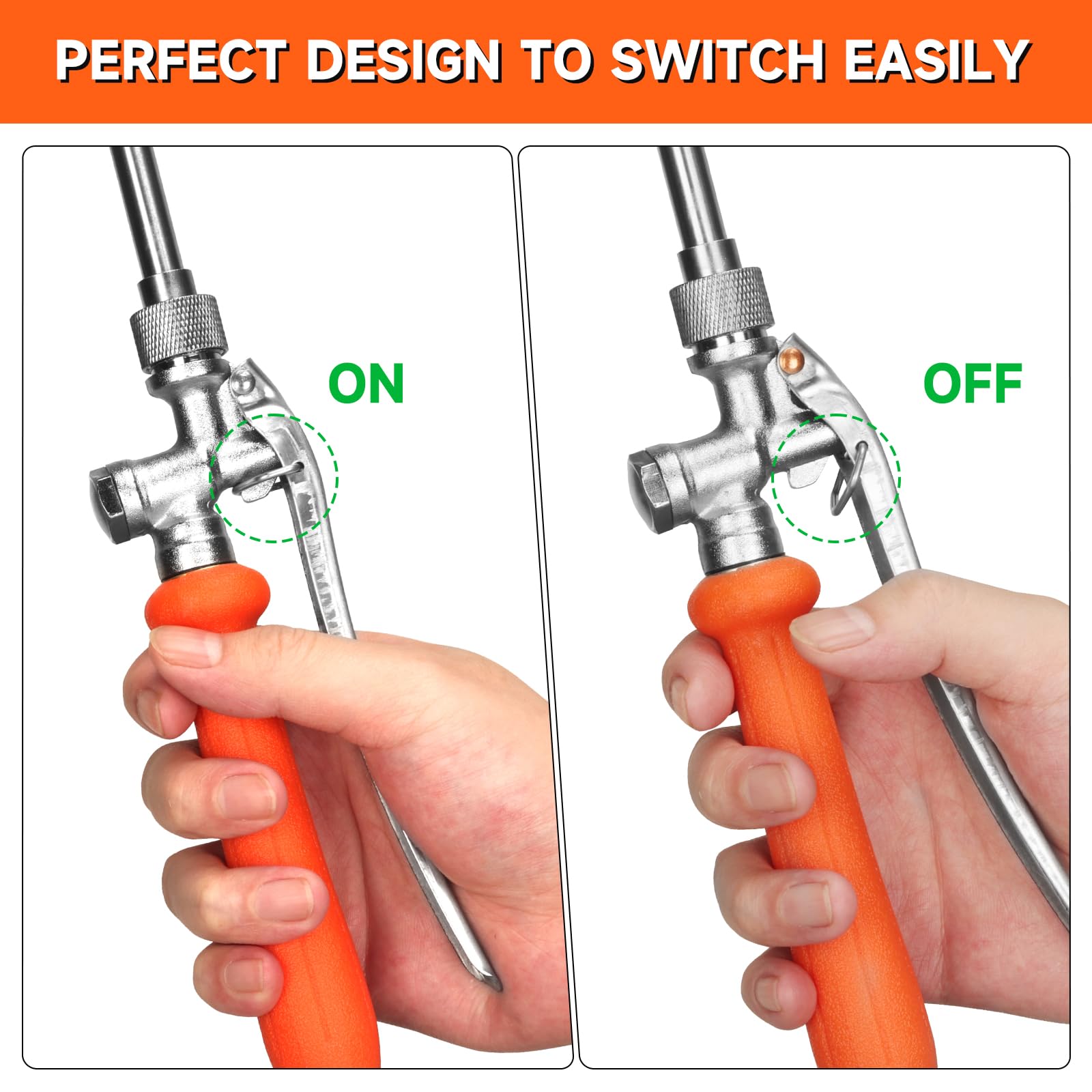 • 【Lockable Swicth handle & Adjustable nozzle】The handle can freely choose whether to lock or not, operated according to needs, can greatly reduce hand fatigue. Just gently twist the nozzle to freely adjust the range from a mist mode to a stream mode according to needs.
