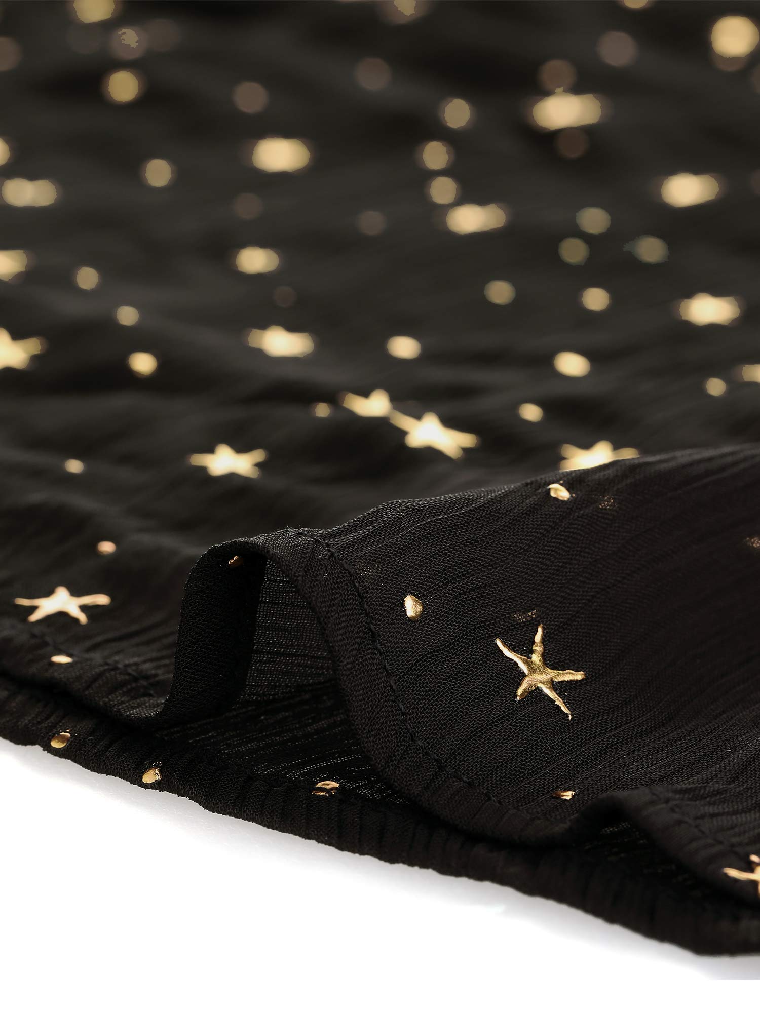• Choker V Neck, Back Keyhole with Button Closure, Long Sleeves with Elastic Cuffs, Stretchy Waist, Gilding Star Pattern, Above Knee, Fully Lined, Inelastic Fabric