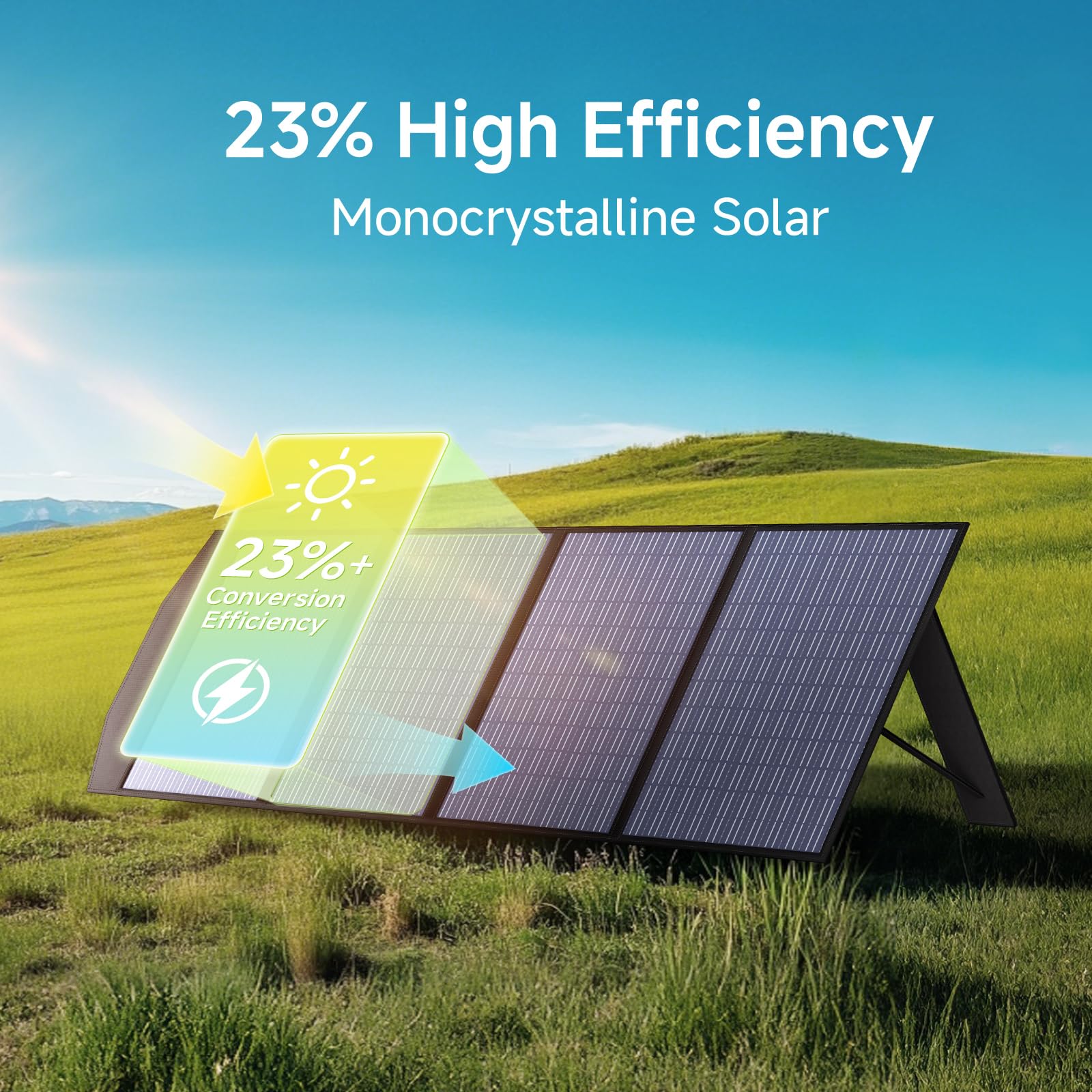 • ▶【A+ Monocrystalline Solar Cells】: 200W solar panel converts sunlight into electricity using a powerful array of monocrystalline solar cells to generate up to 200W and 36V of on-the-go power. The solar panels receive the most effective sunlight, up to 23% efficiency.Providing more energy and a longer lifecycle than conventional polycrystalline solar panels.