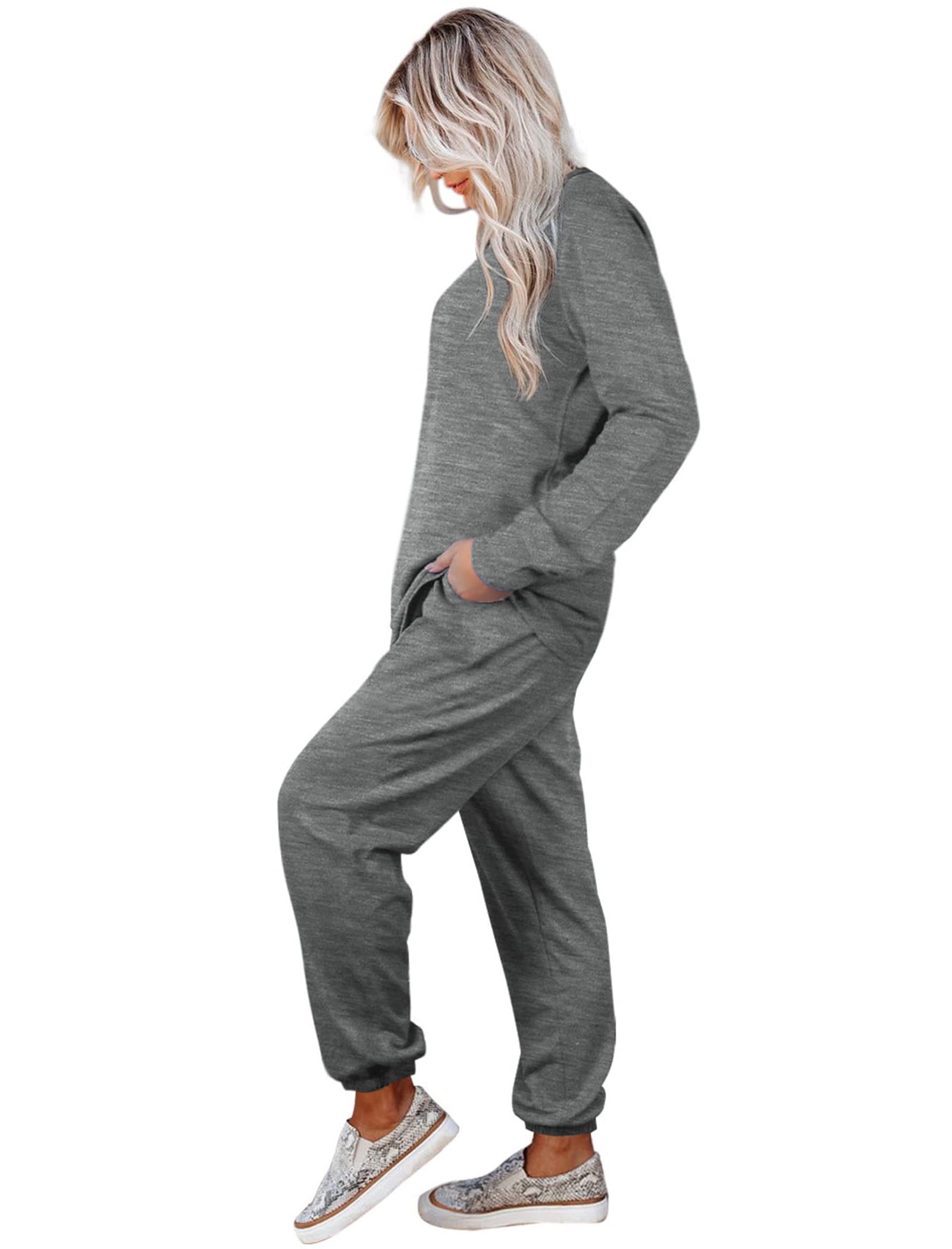 Aloodor Pajama Set for Women 2 Piece Long Sleeve Fall Clothes Lounge Sets Soft Sleepwear Gray XL